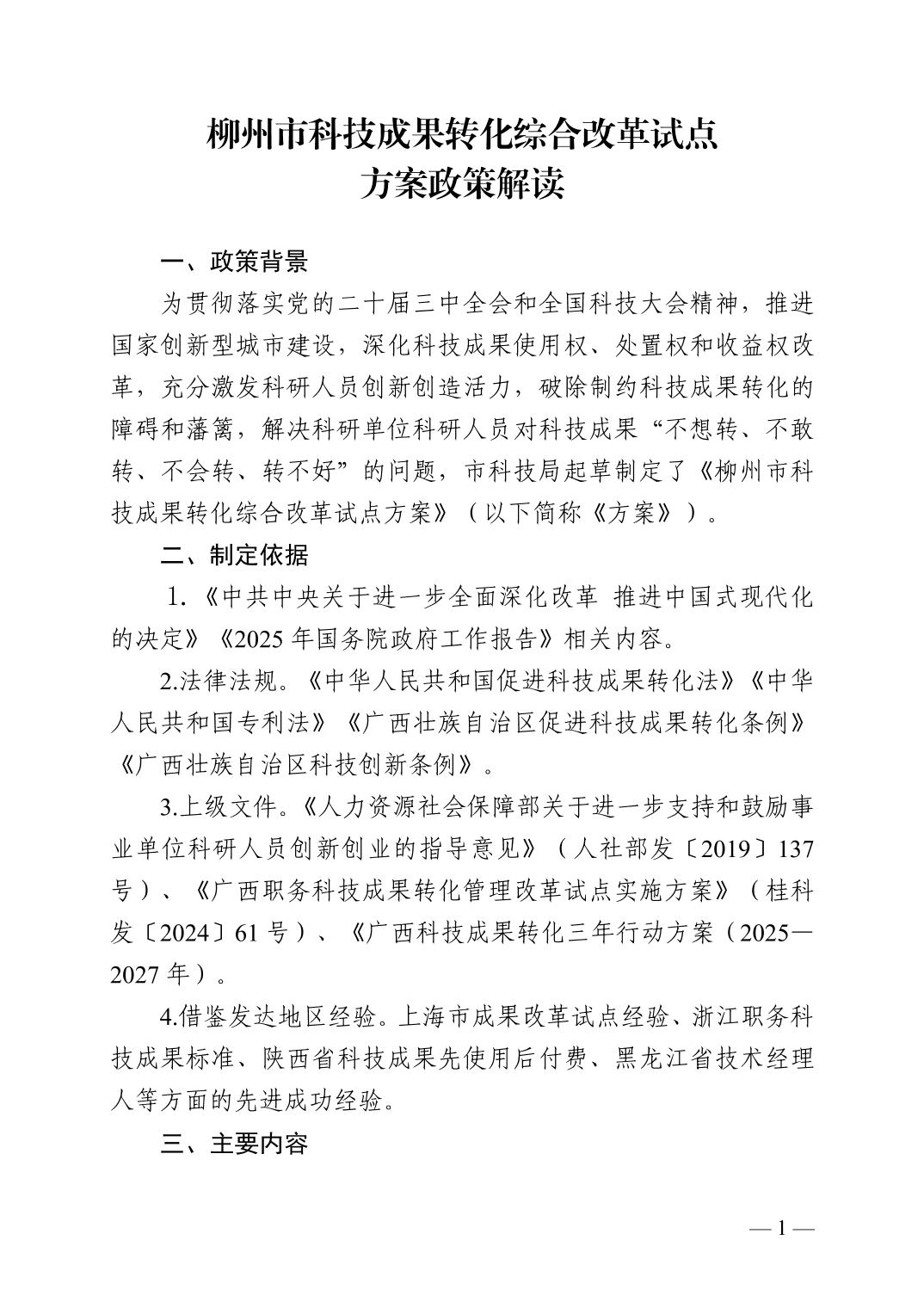 柳科规〔2025〕1号-关于印发《柳州市科技成果转化综合改革试点方案》的通知