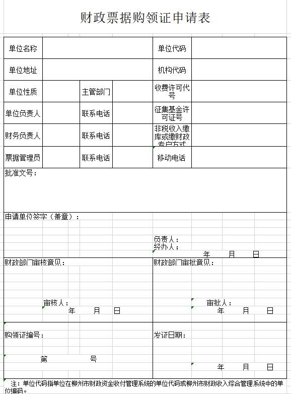 《财政票据购领证》申请表