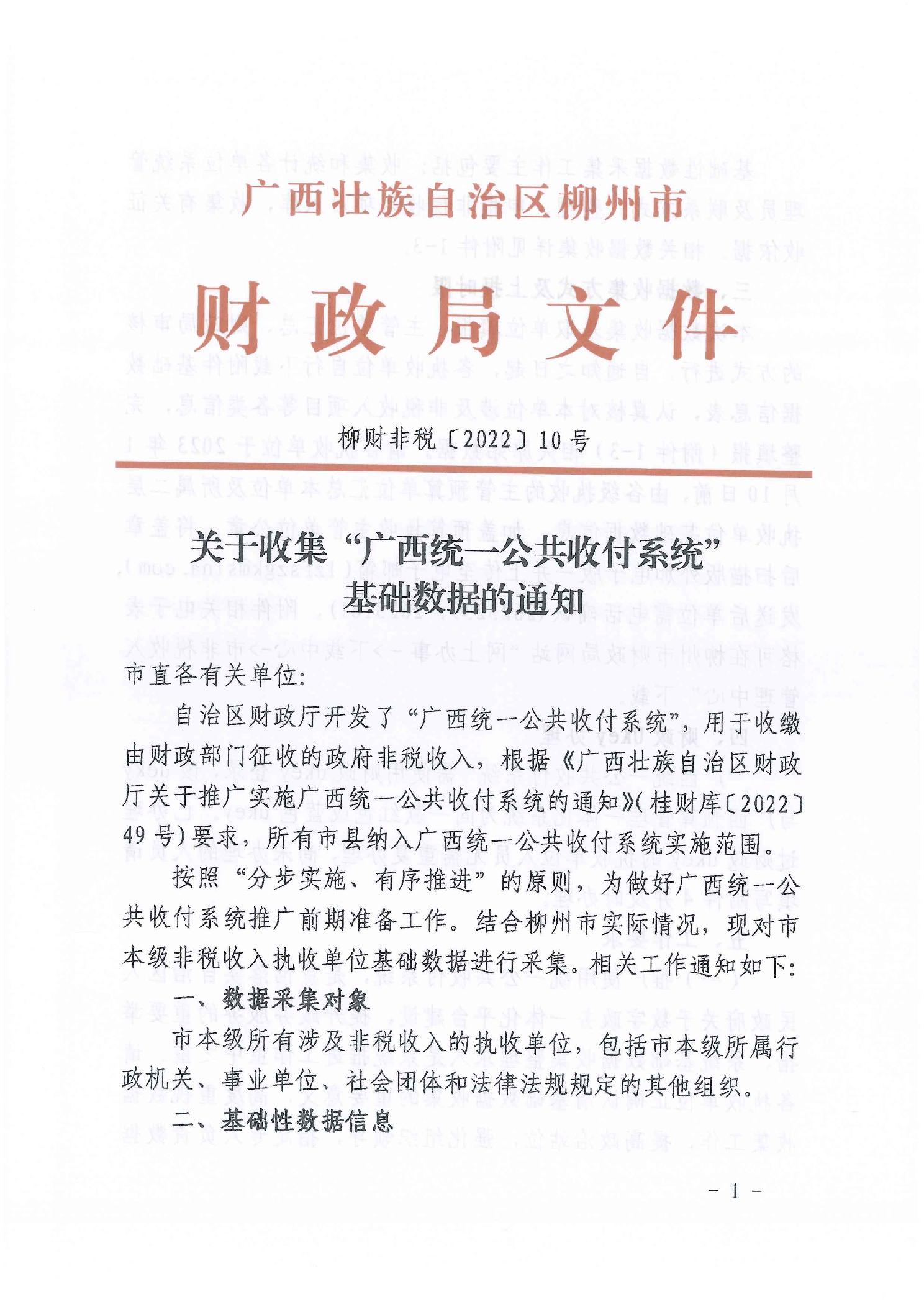 关于收集广西统一公共收付系统基础数据的通知