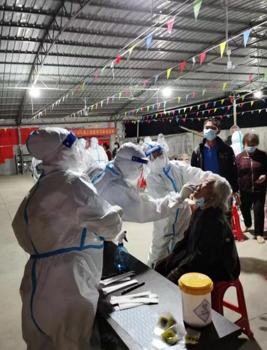 二、党旗领航,下沉一线,充实基层疫情防控力量。永利博彩党支部充分发挥党员先锋模范作用,共派出29名党员干部下沉三都镇、拉堡镇疫情防控一线,以实际行动践行党员初心使命,协助镇街核酸检测、守卡执勤工作;派出干部职工66人次深入社区,积极开展志愿服务活动,疏导群众情绪,服务封控区管控区群众生活,形成群防群控强大合力,把党旗高高飘扬在“战疫”前线。