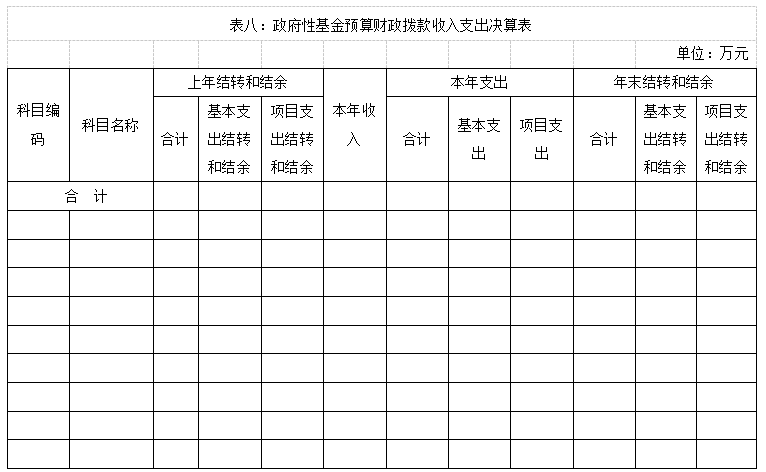 表八:政府性基金预算财政拨款收入支出决算表