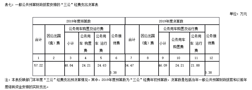 七、2019年度一般公共预算财政拨款“三公”经费支出决算情况