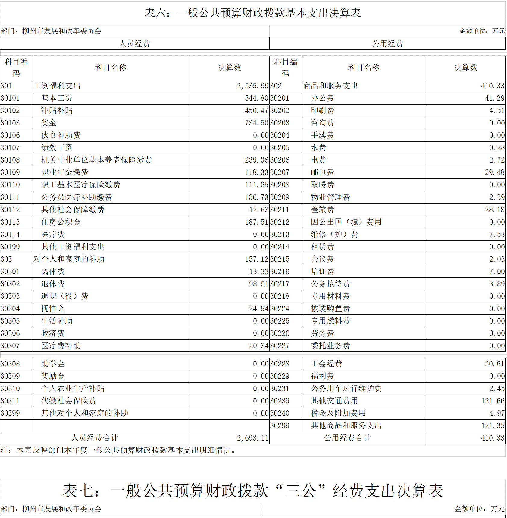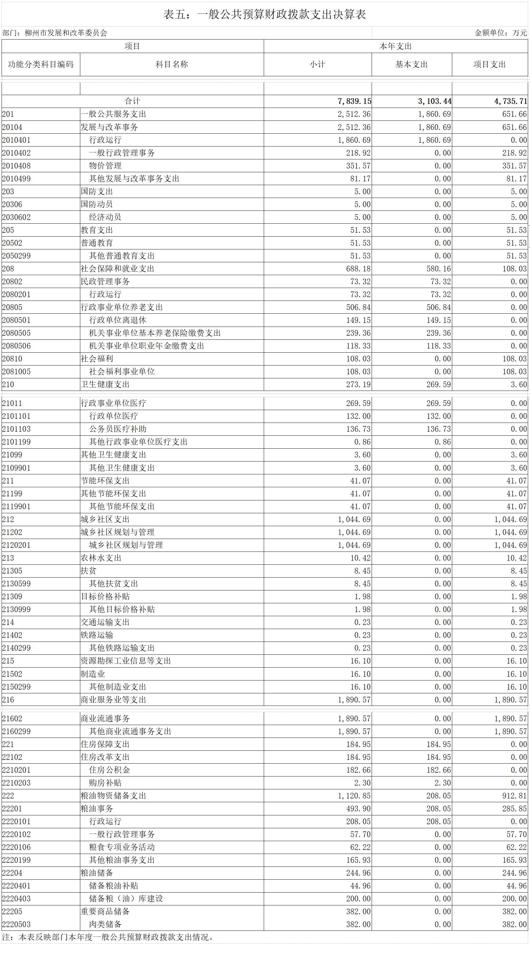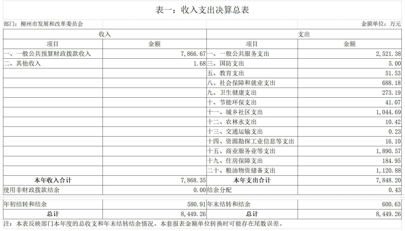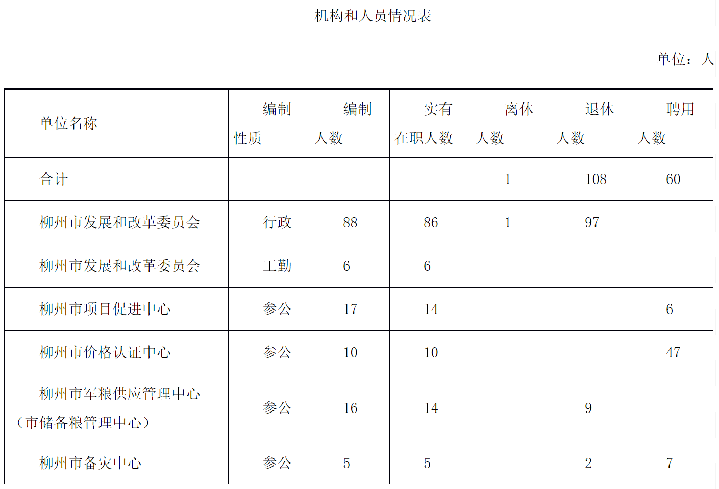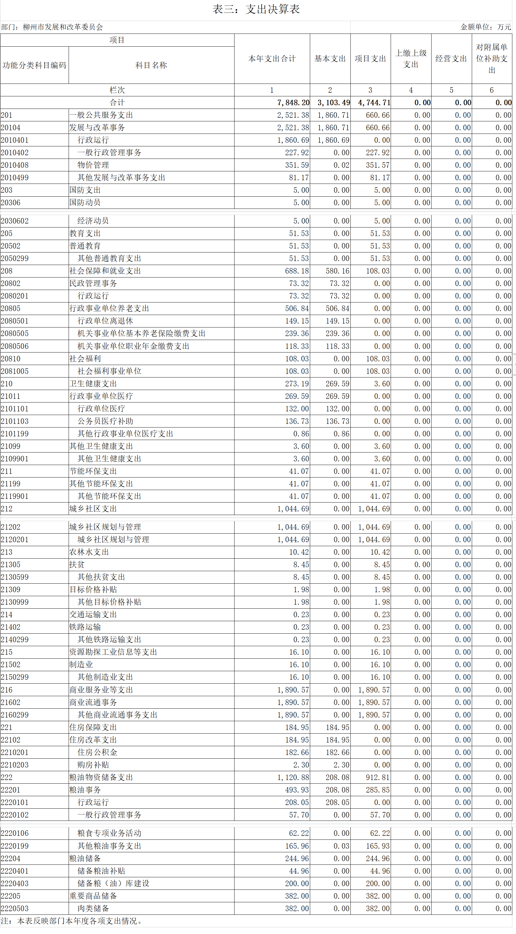 第二部分:柳州市发展和改革委员会2020年部门决算报表