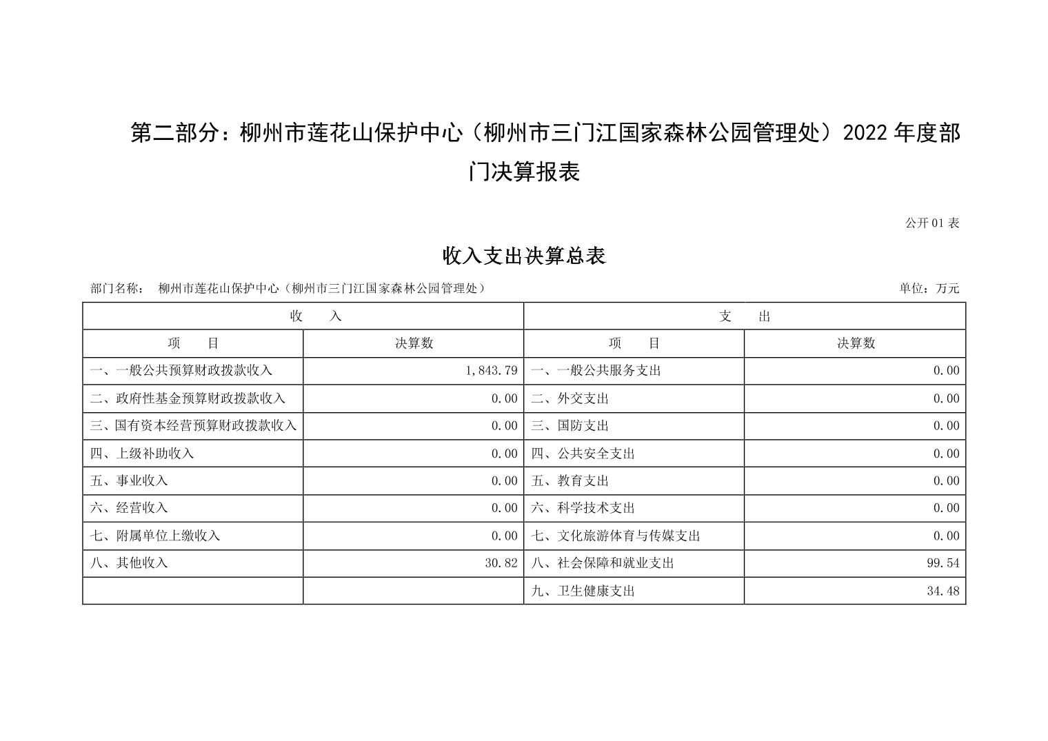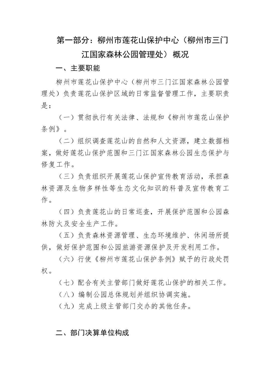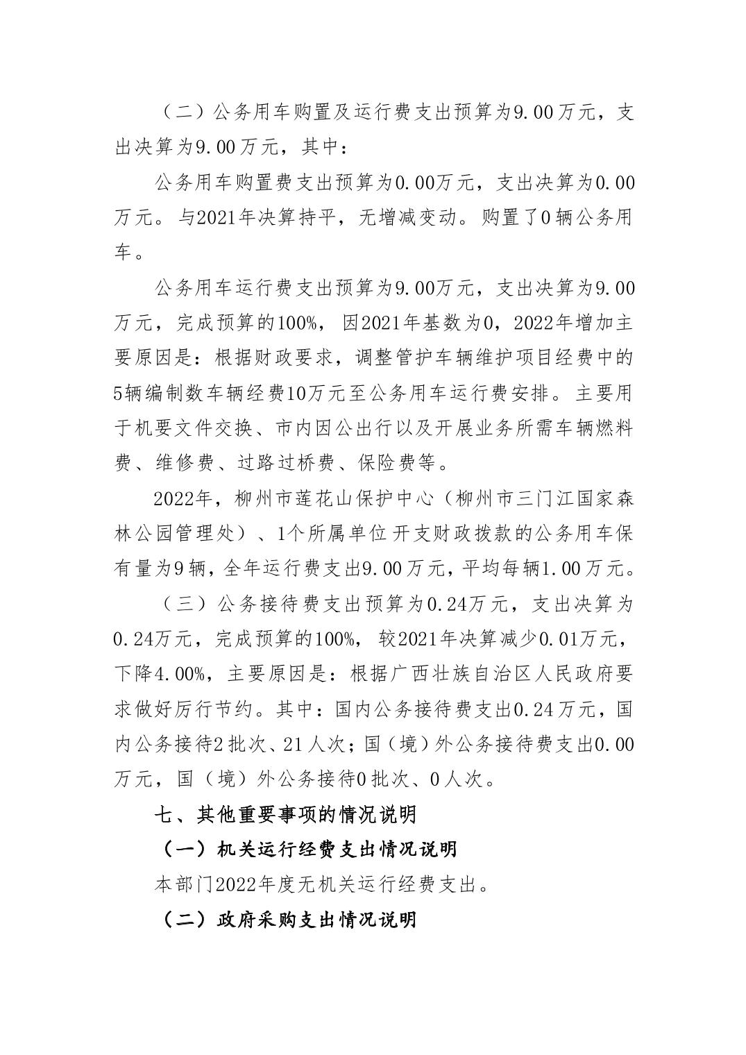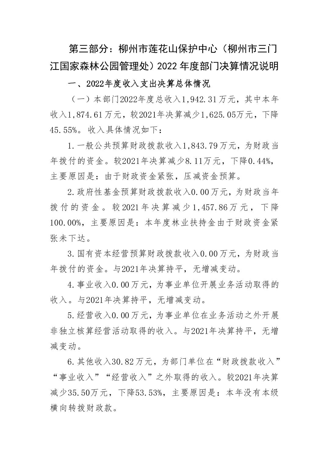 柳州市莲花山保护中心(柳州市三门江国家森林公园管理处)2022年度部门决算.pdf