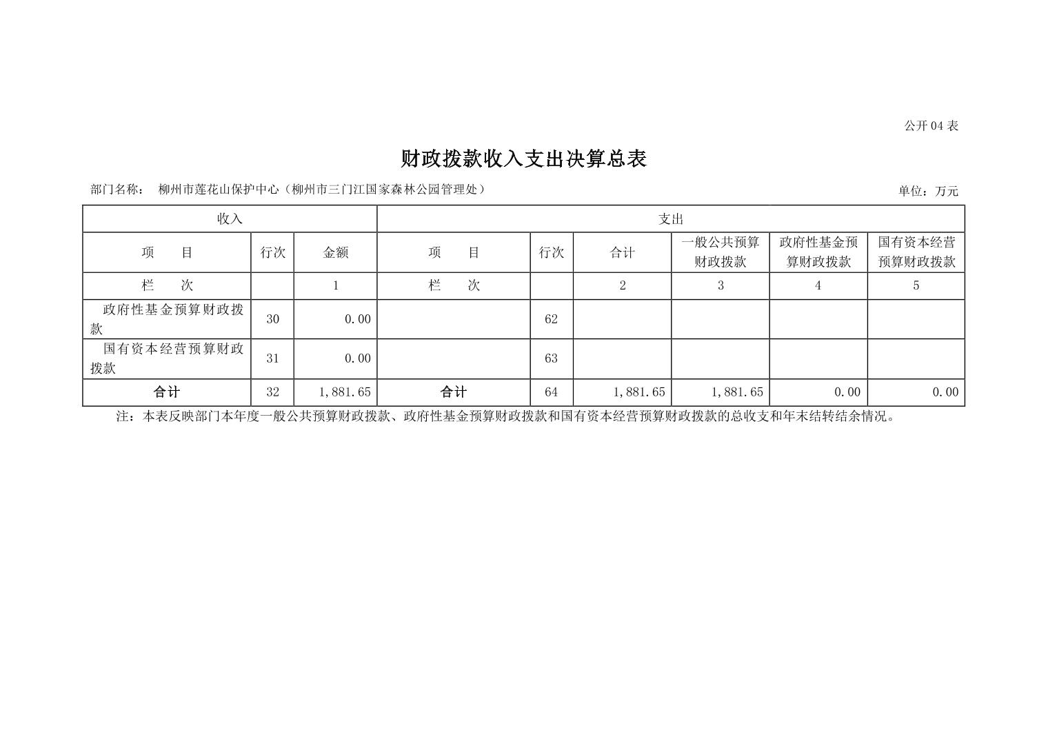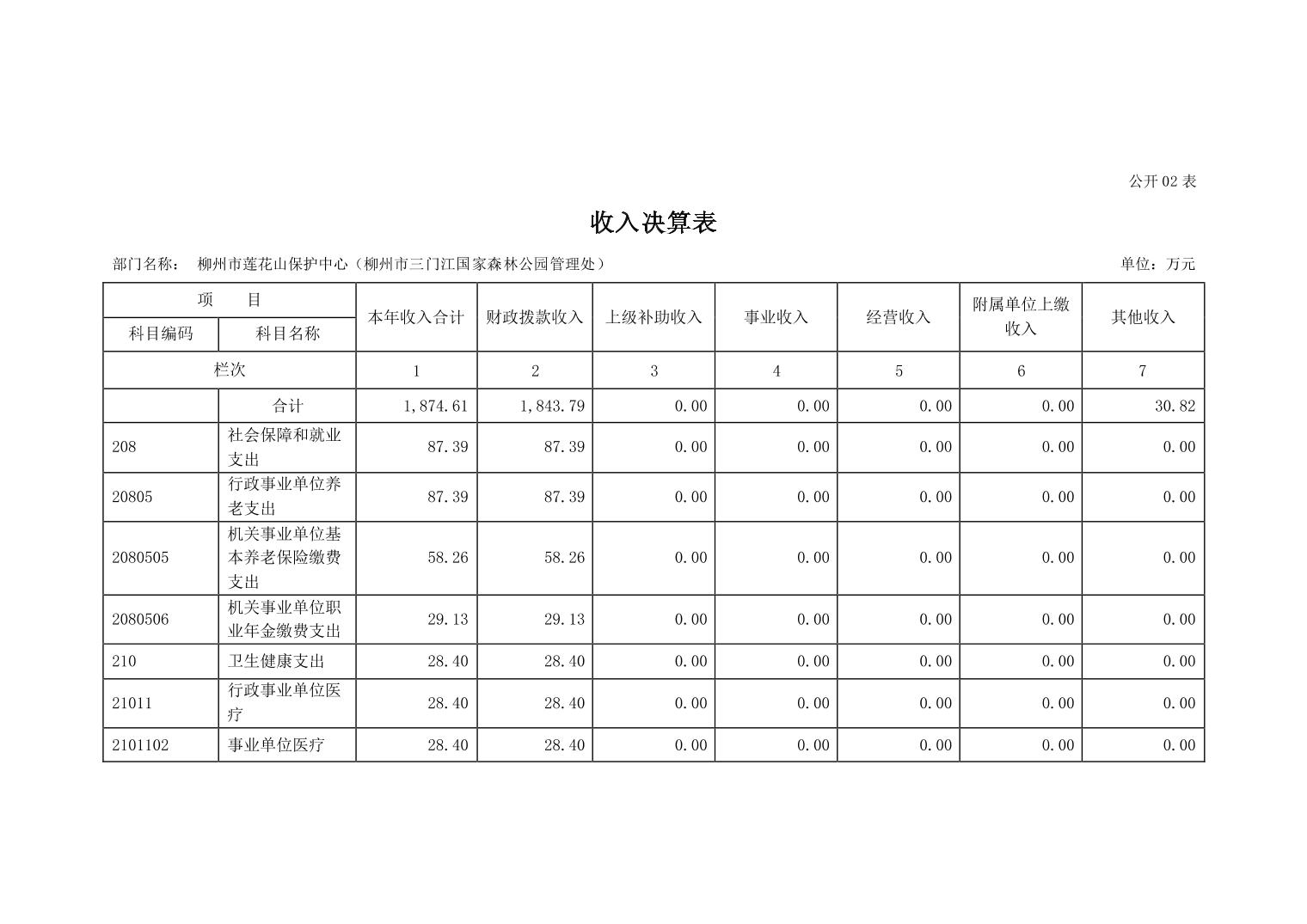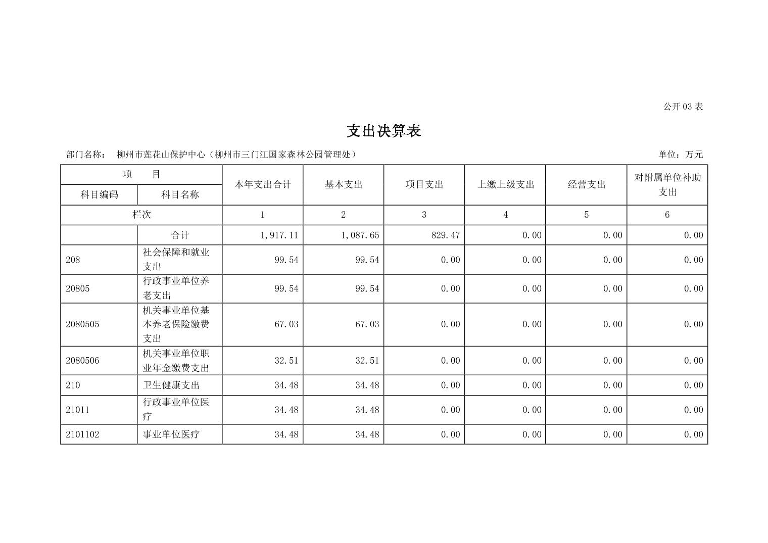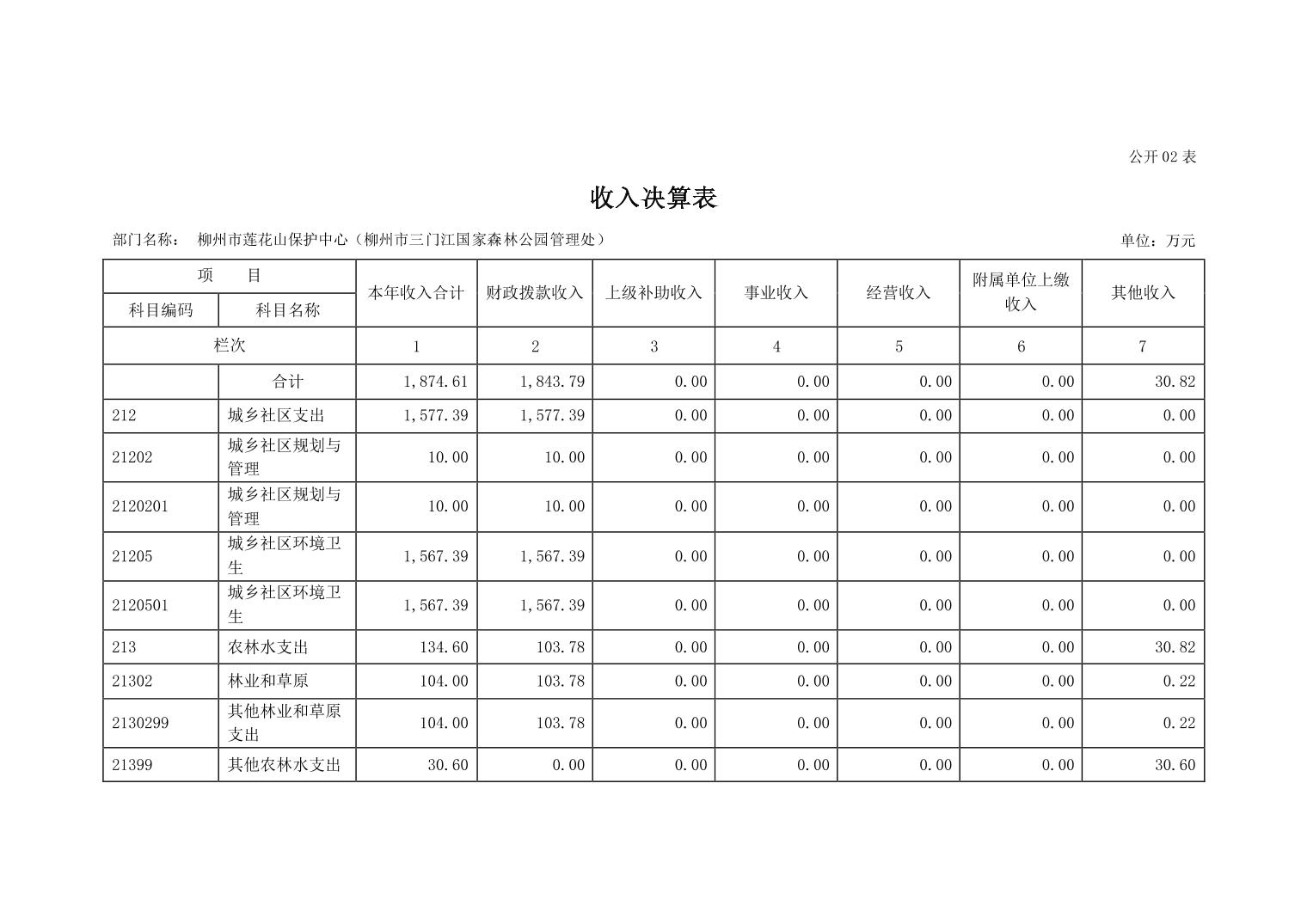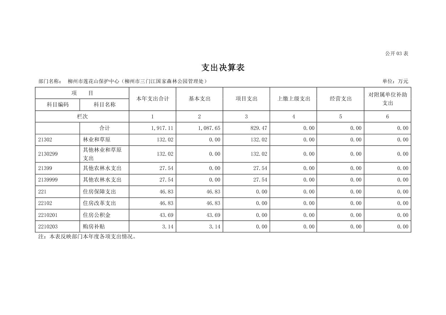 柳州市莲花山保护中心(柳州市三门江国家森林公园管理处)2022年度部门决算.pdf