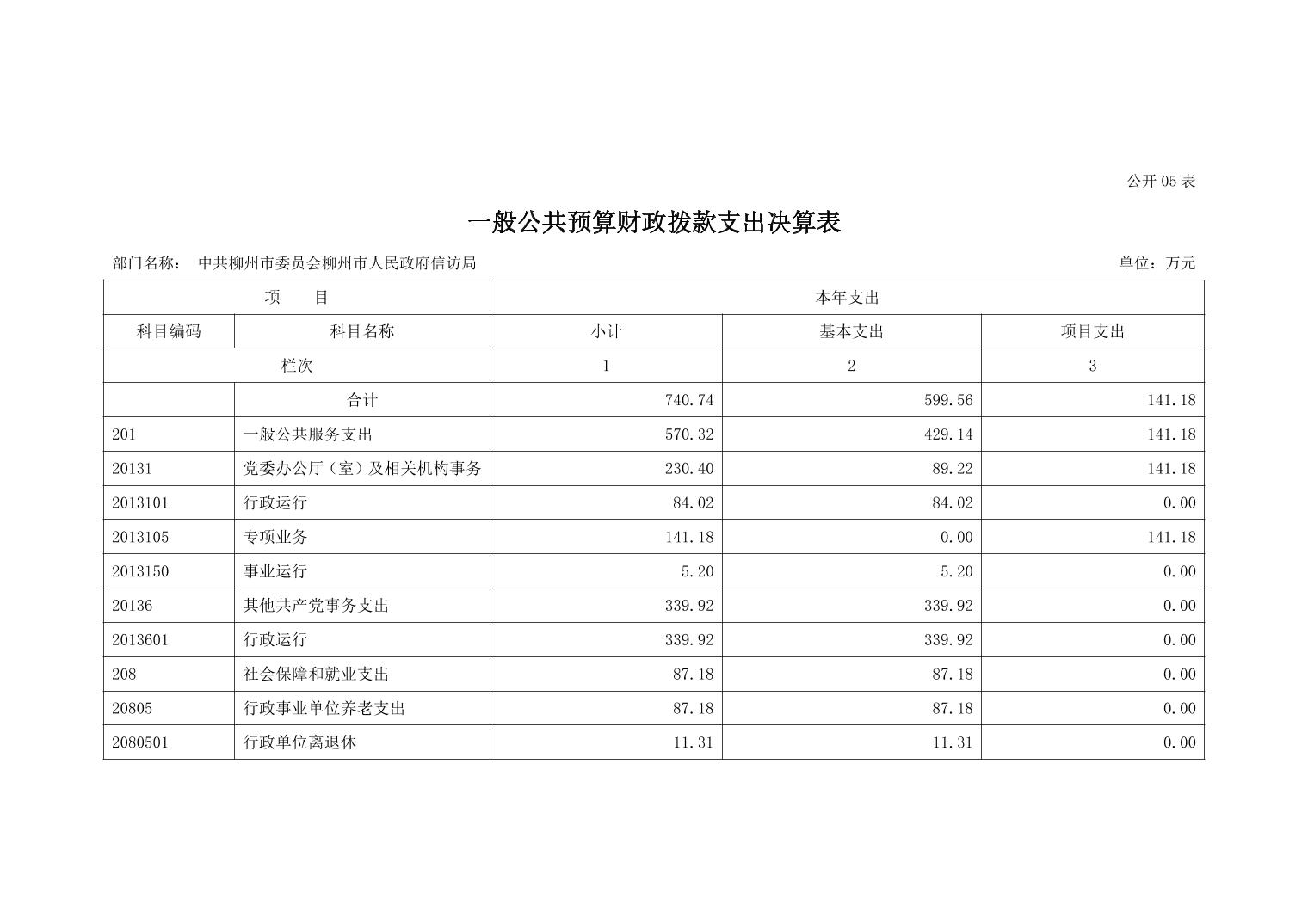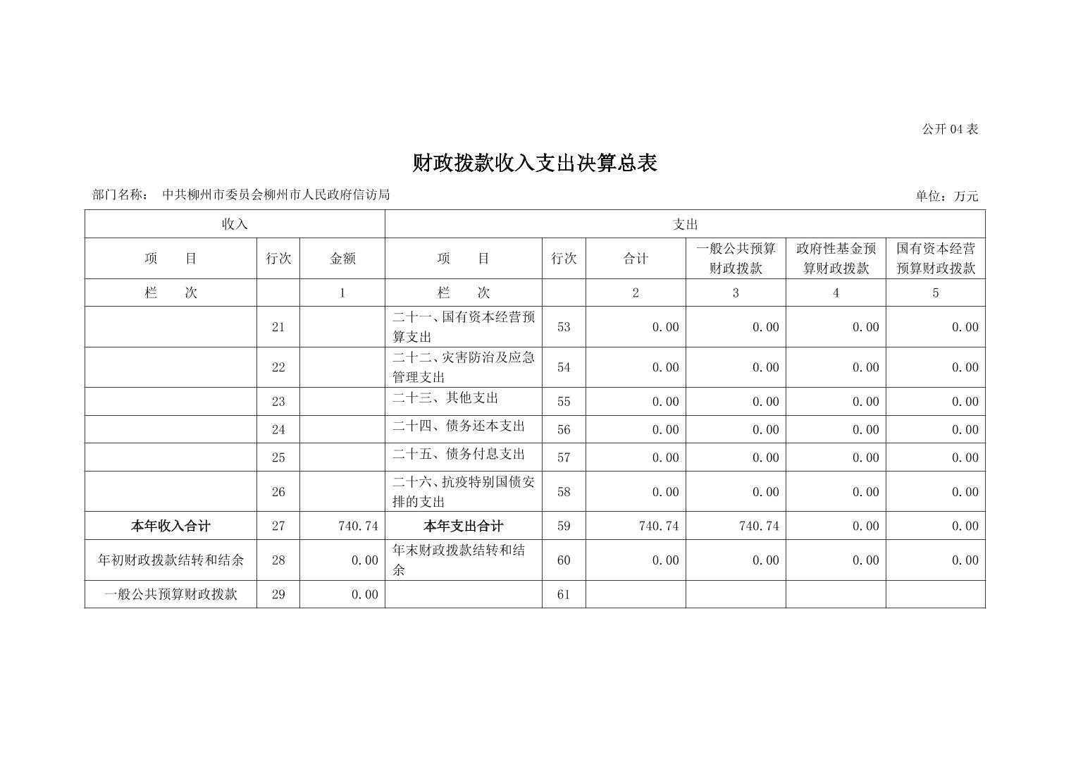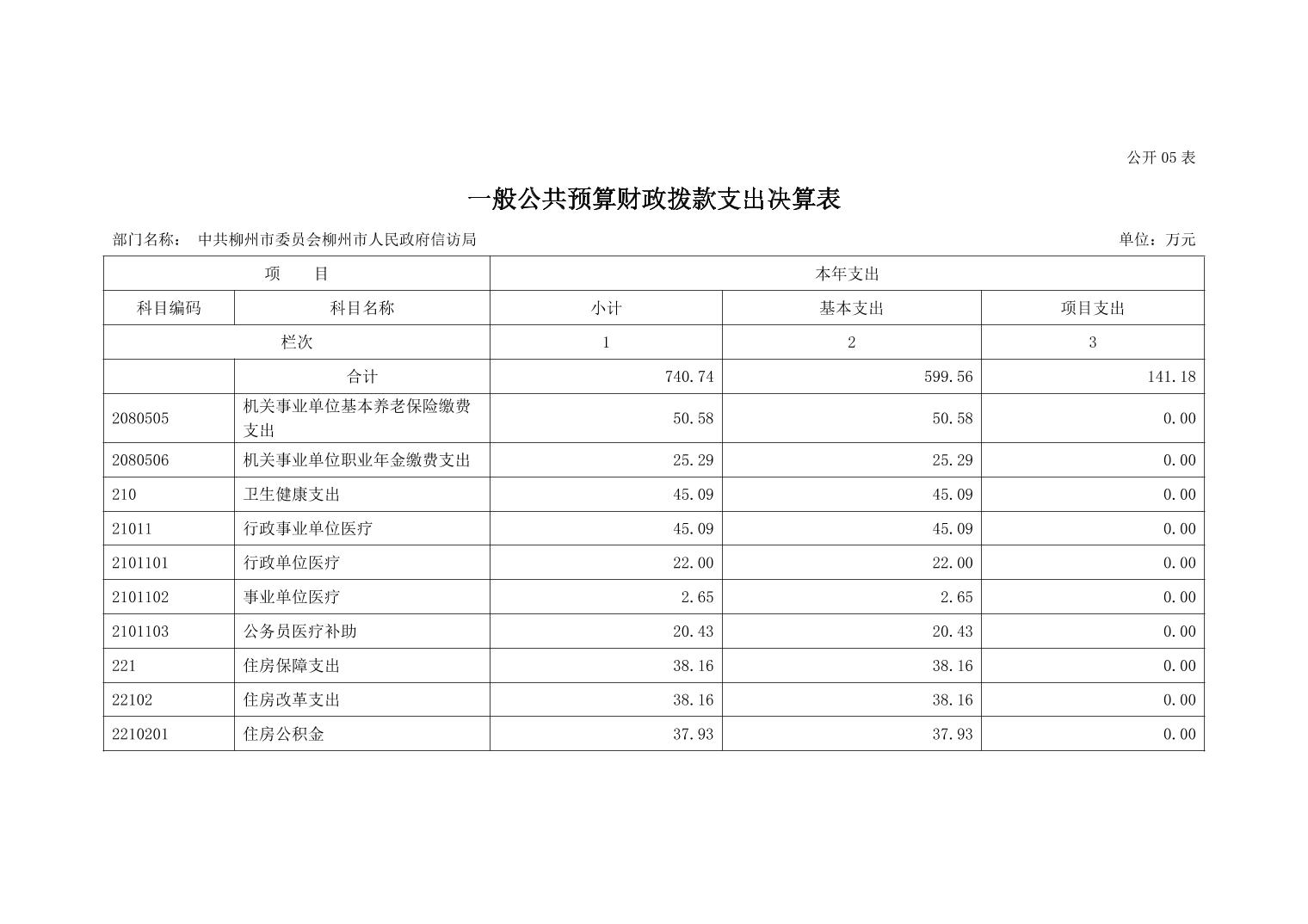 中共柳州市委员会柳州市人民政府信访局2022年度部门决算
