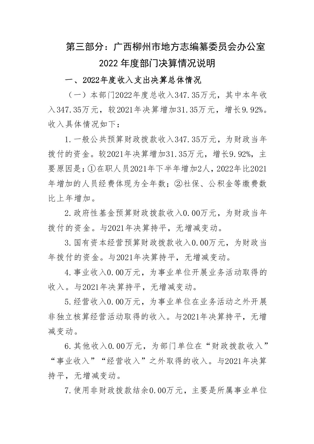 广西柳州市地方志编纂委员会办公室2022年度部门决算 - 2022 - 广西永利博彩网站