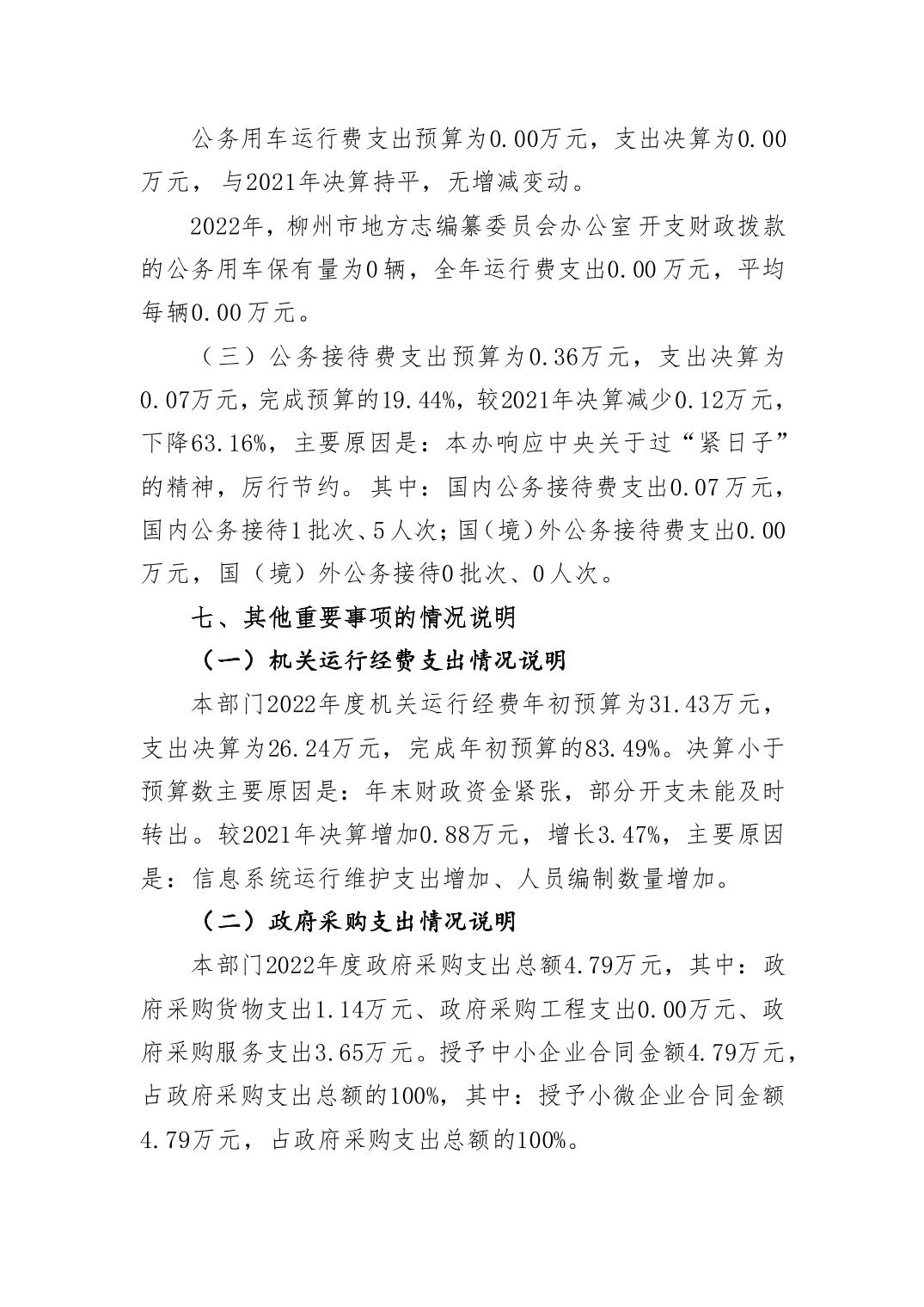 广西柳州市地方志编纂委员会办公室2022年度部门决算