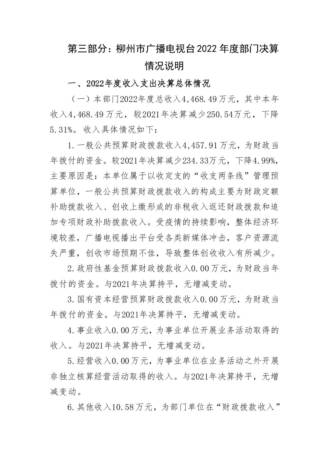 柳州市广播电视台2022年度部门决算 - 2022 - 广西永利博彩网站