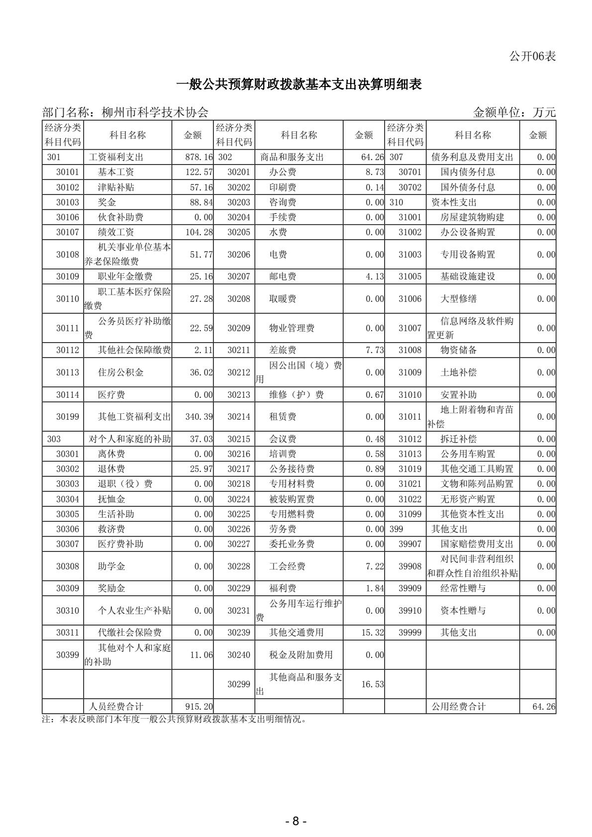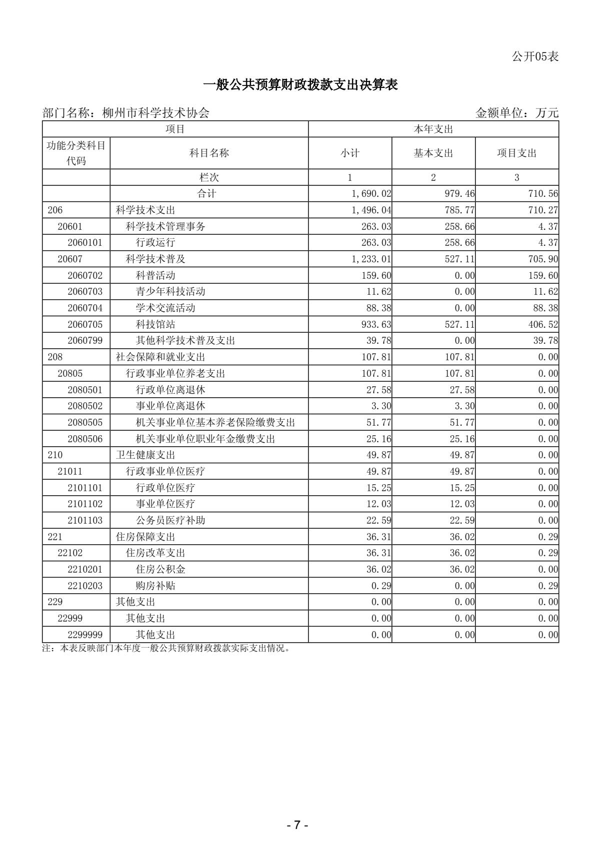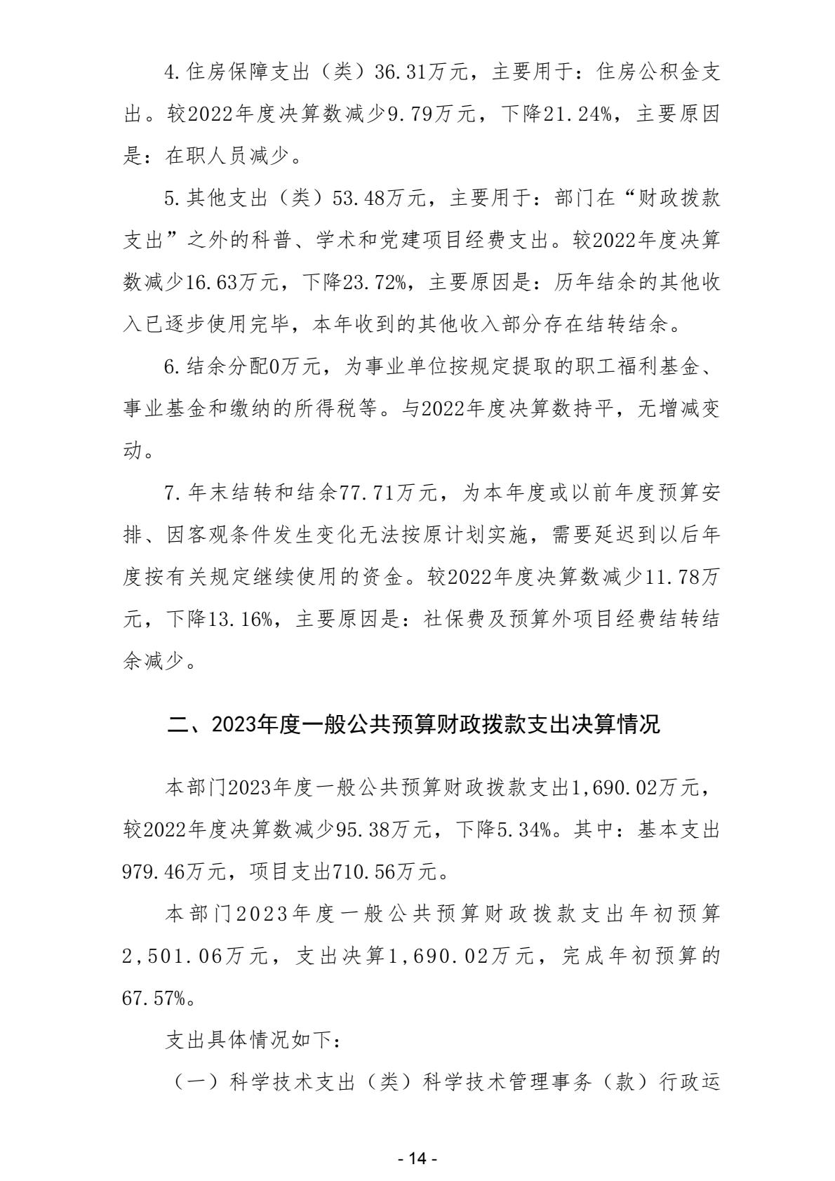 柳州市科学技术协会2023年度部门决算