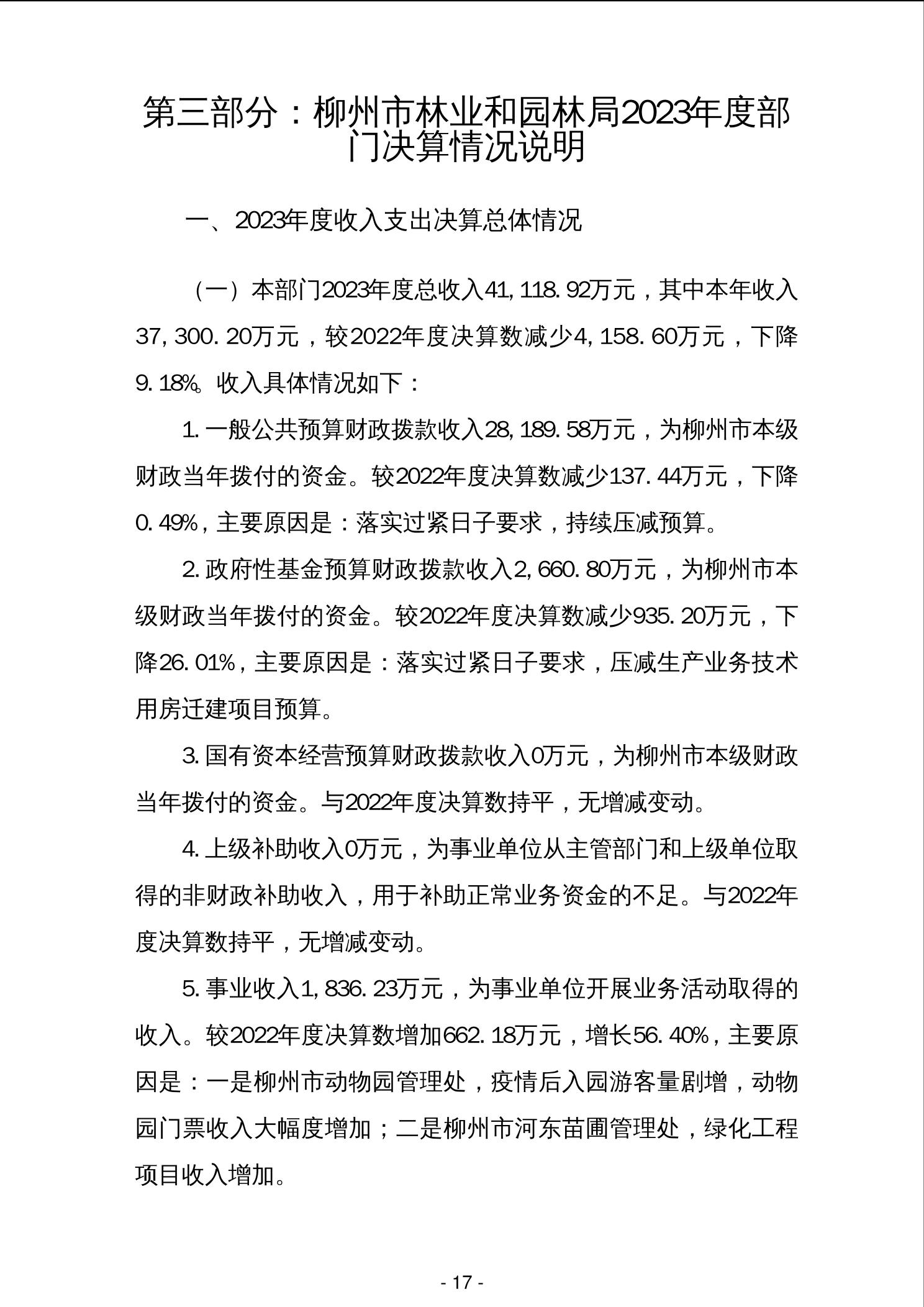 柳州市林业和园林局2023年度部门决算 - 2023 - 广西永利博彩网站