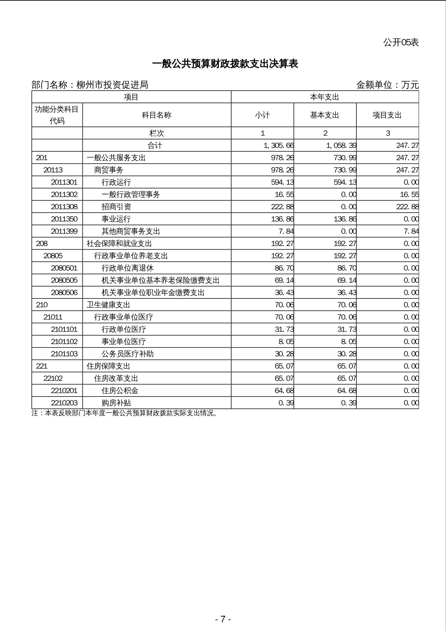 柳州市投资促进局2023年度部门决算
