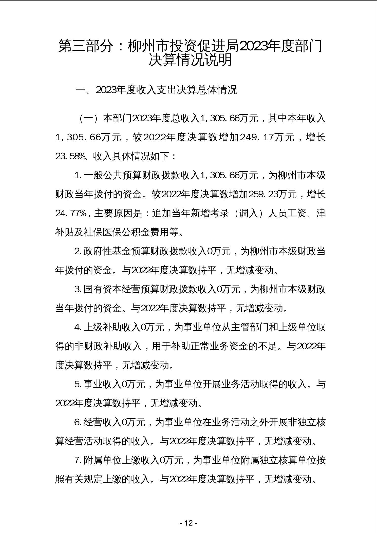 柳州市投资促进局2023年度部门决算 - 2023 - 广西永利博彩网站