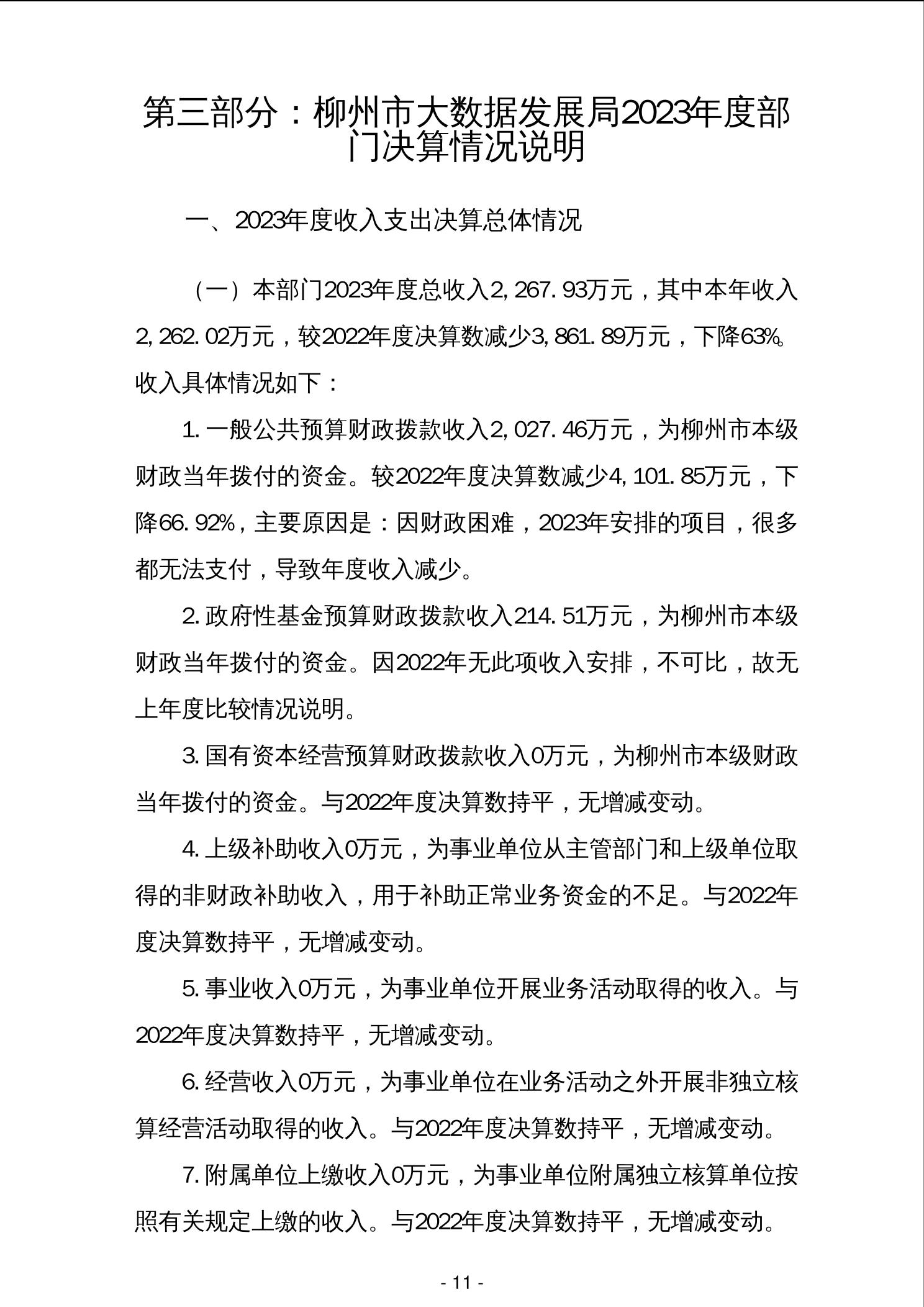 2023年柳州市大数据发展局部门决算 - 2023 - 广西永利博彩网站