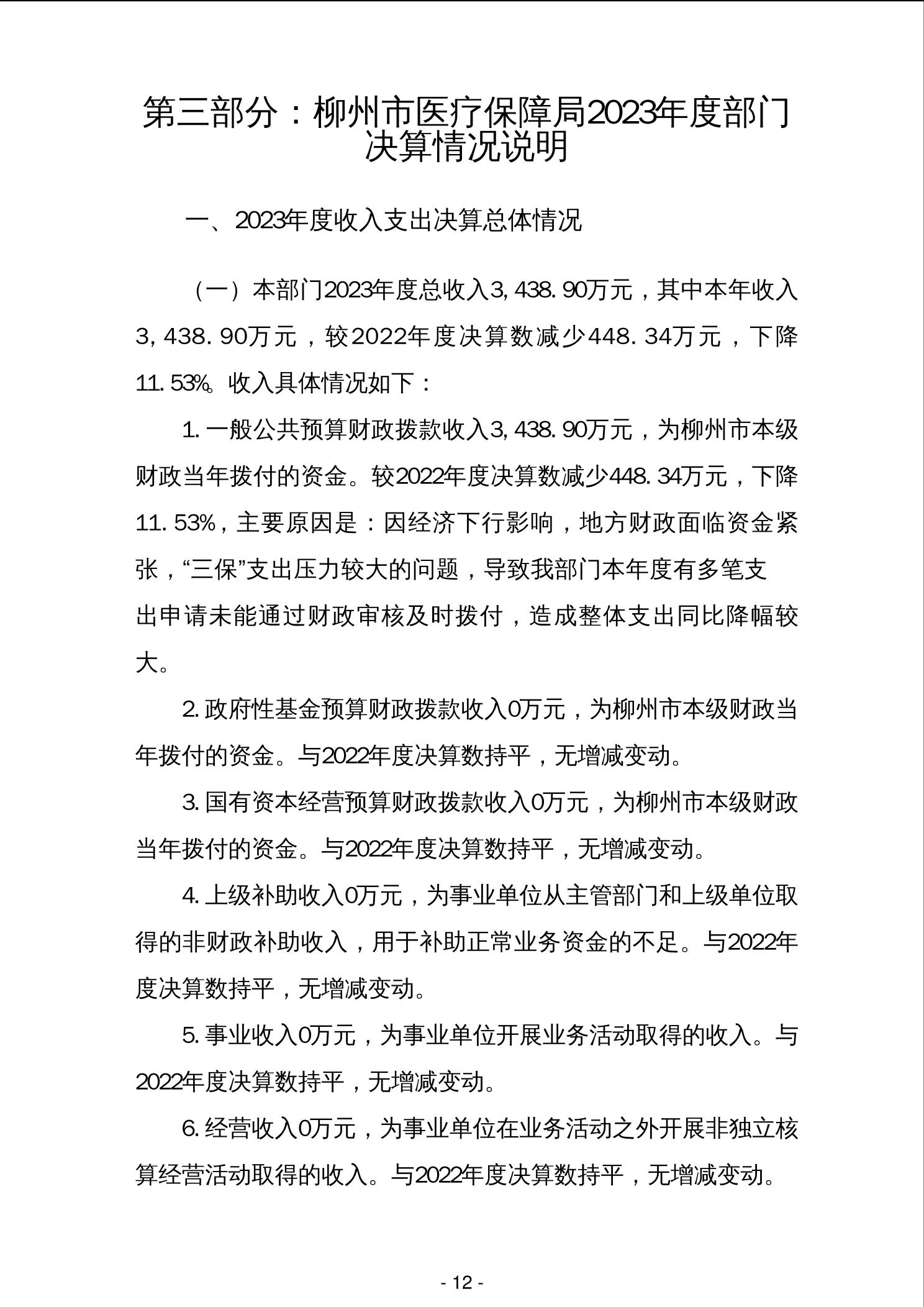 柳州市医疗保障局2023年年度部门决算 - 2023 - 广西永利博彩网站