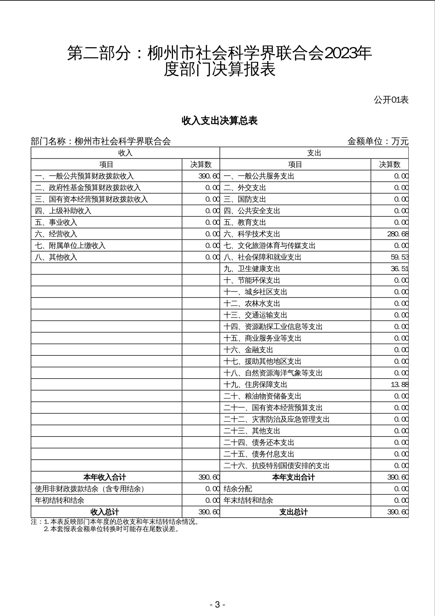 柳州市社会科学界联合会 2023年度部门决算 - 2023 - 广西永利博彩网站