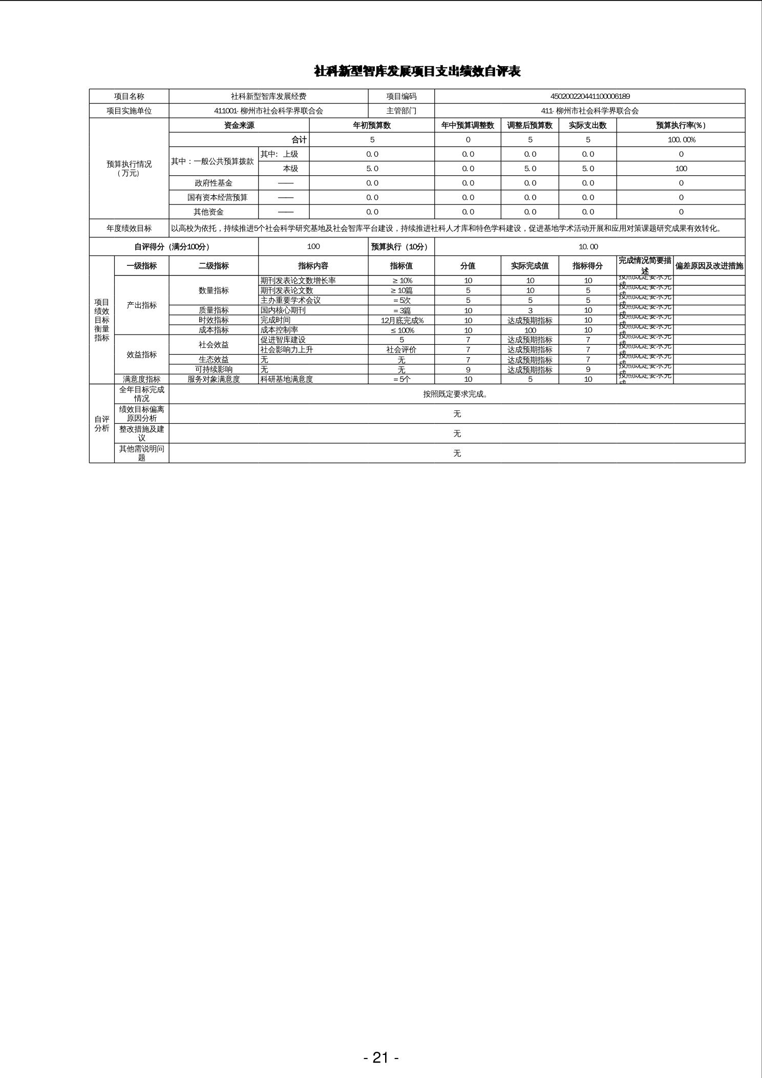 项目支出绩效自评表_柳州市社会科学界联合会(社科新型智库发展经费).xls