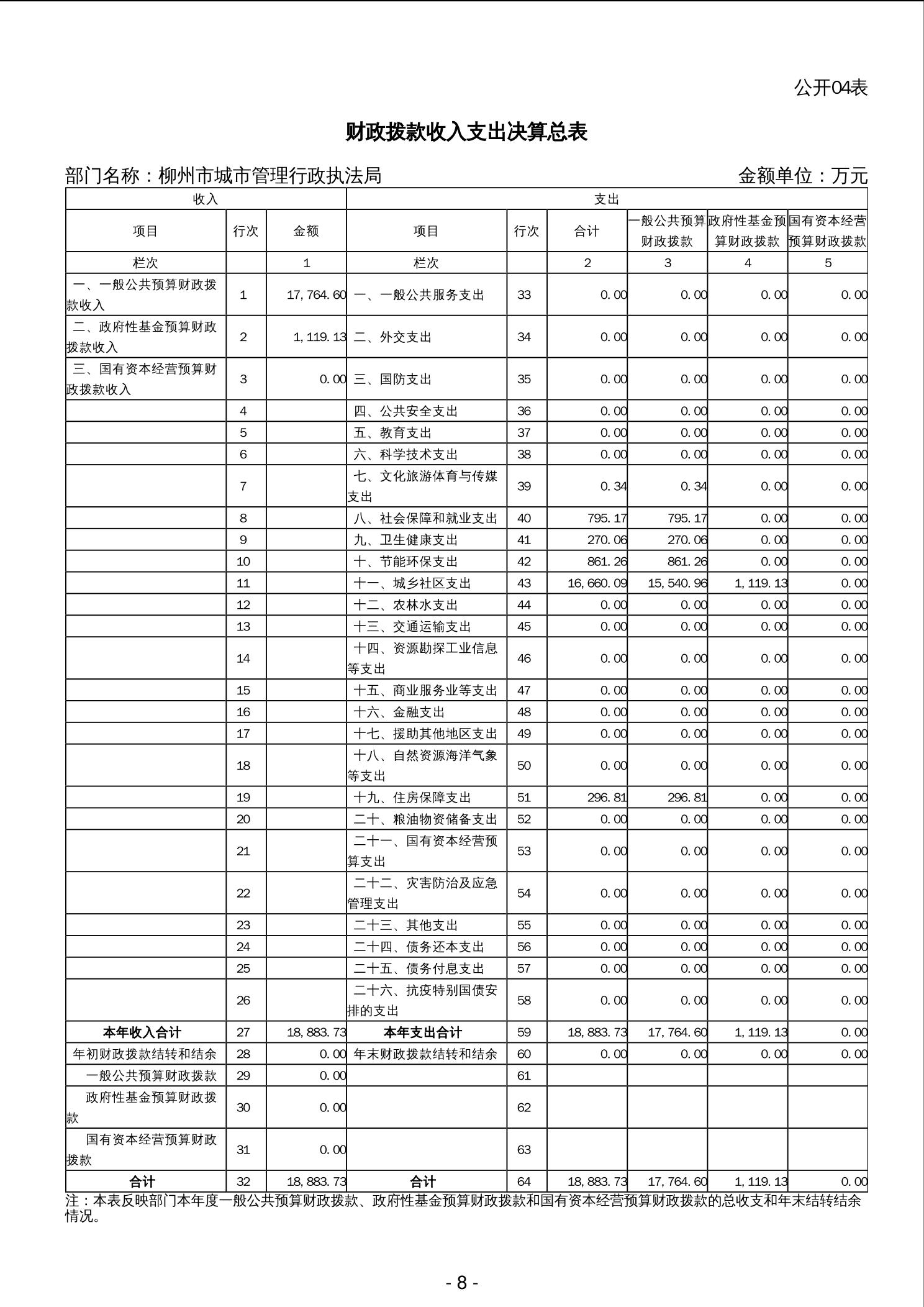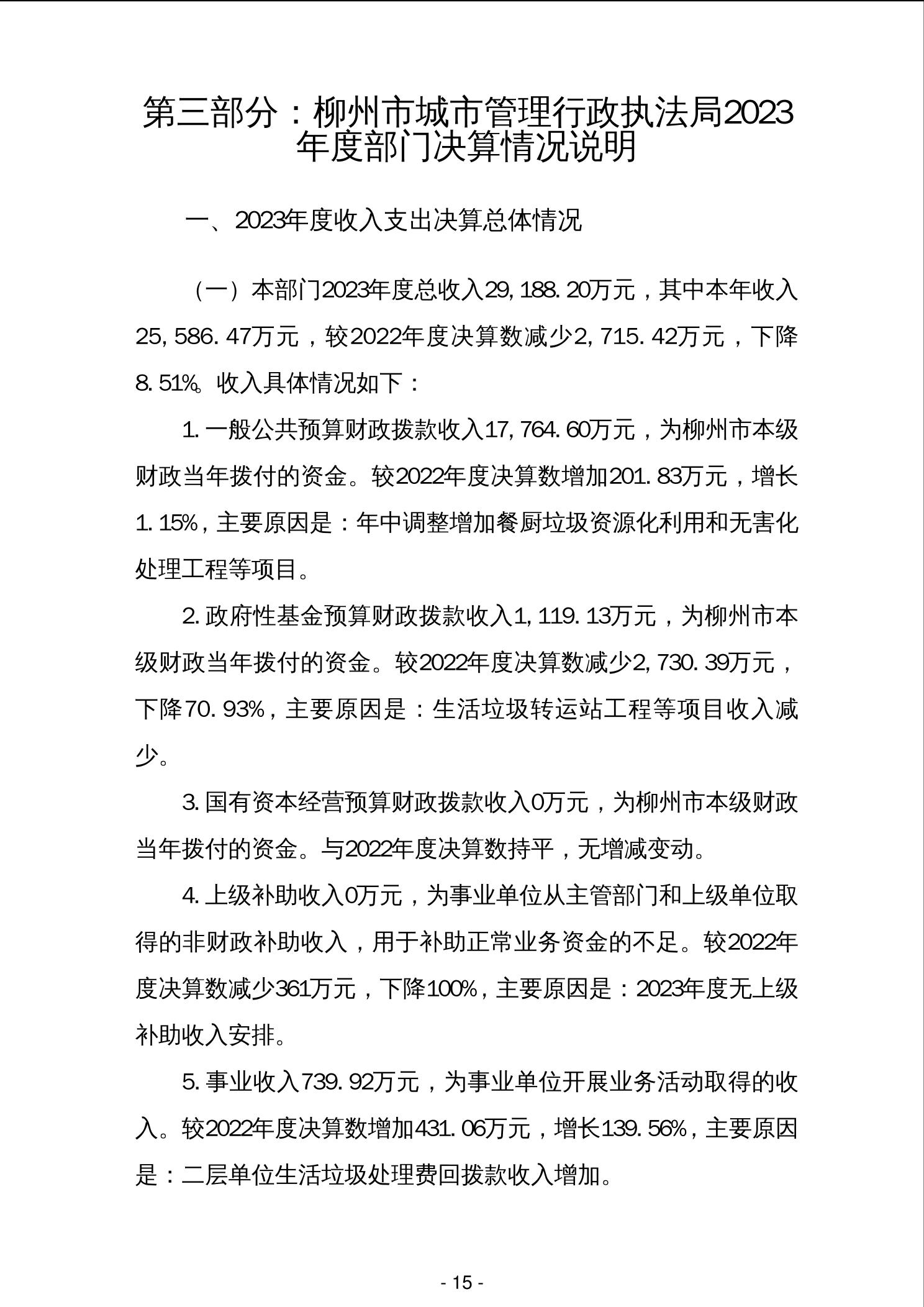 2023年柳州市城市管理行政执法局部门决算 - 2023 - 广西永利博彩网站