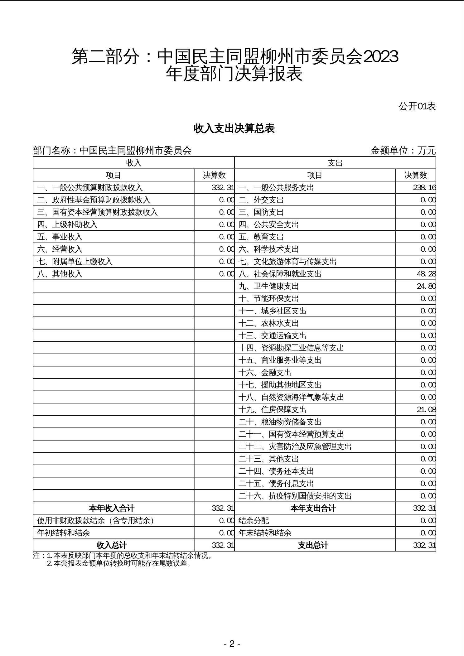 中国民主同盟柳州市委员会2023年度部门决算 - 2023 - 广西永利博彩网站