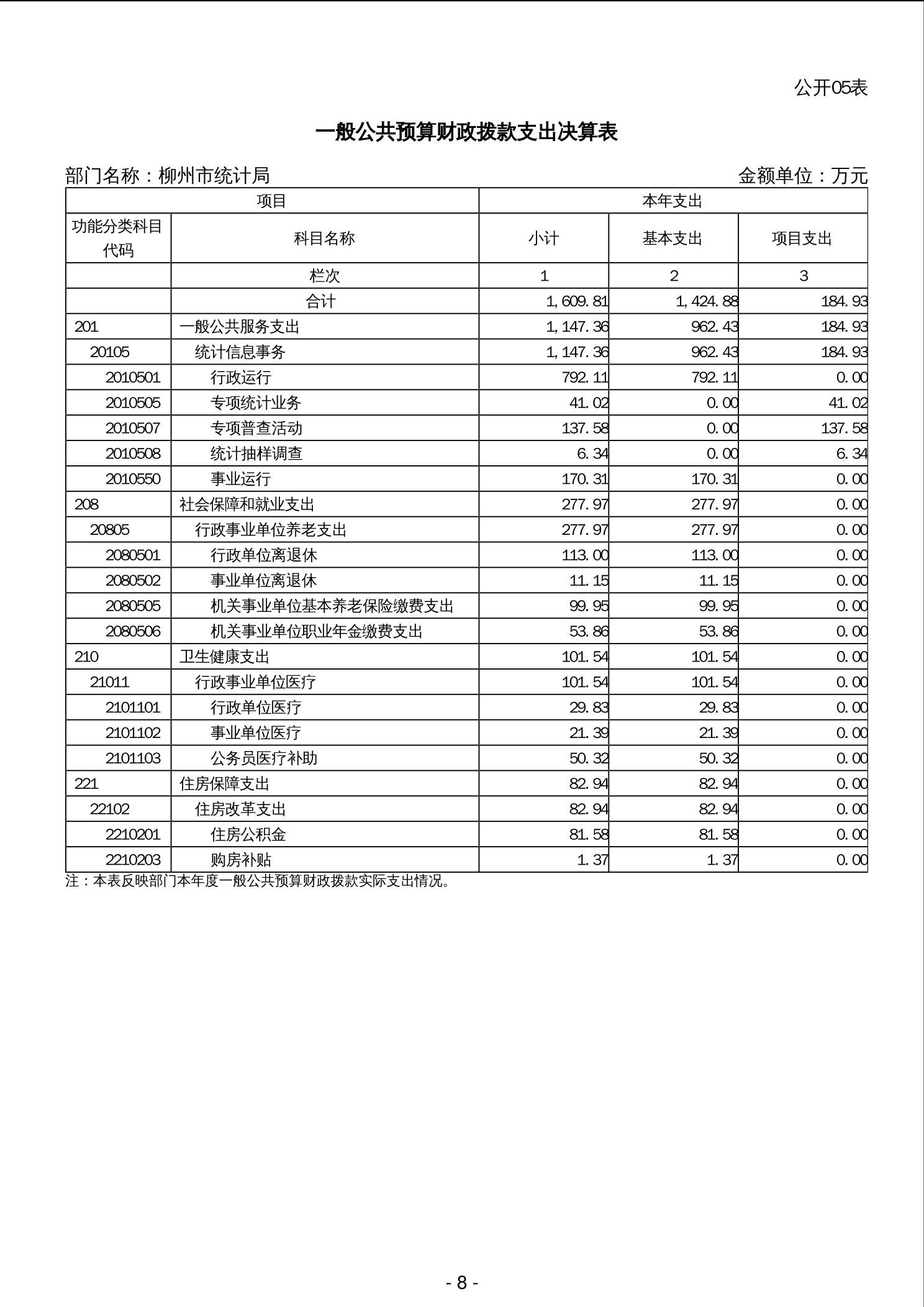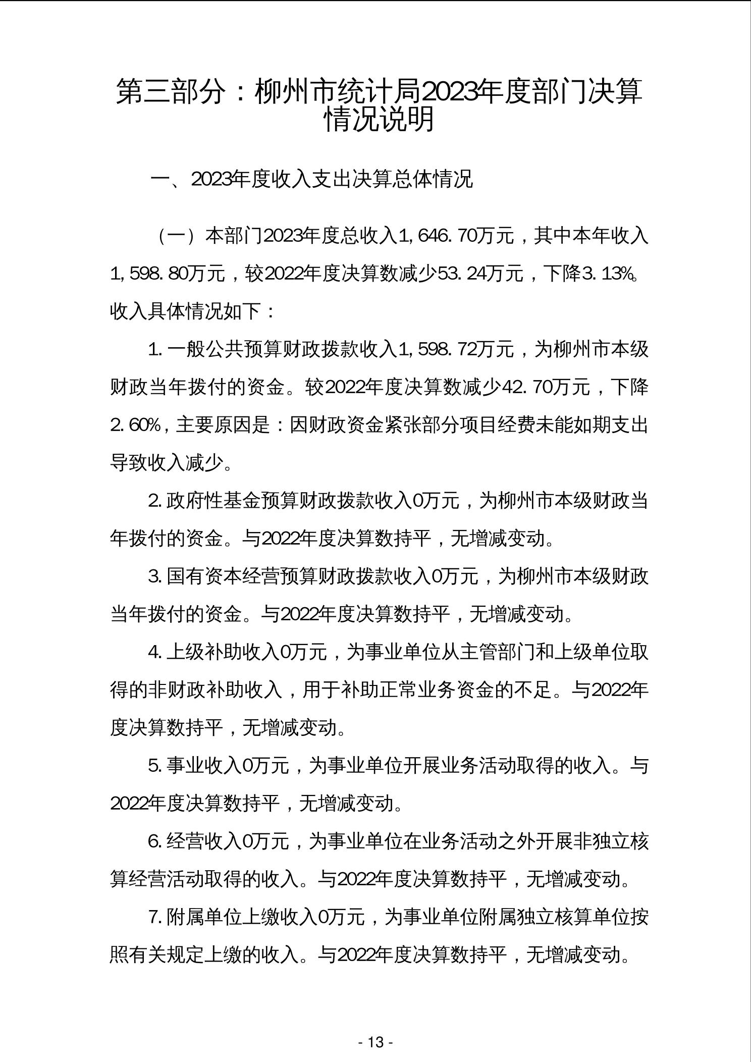 2023年柳州市统计局部门决算 - 2023 - 广西永利博彩网站