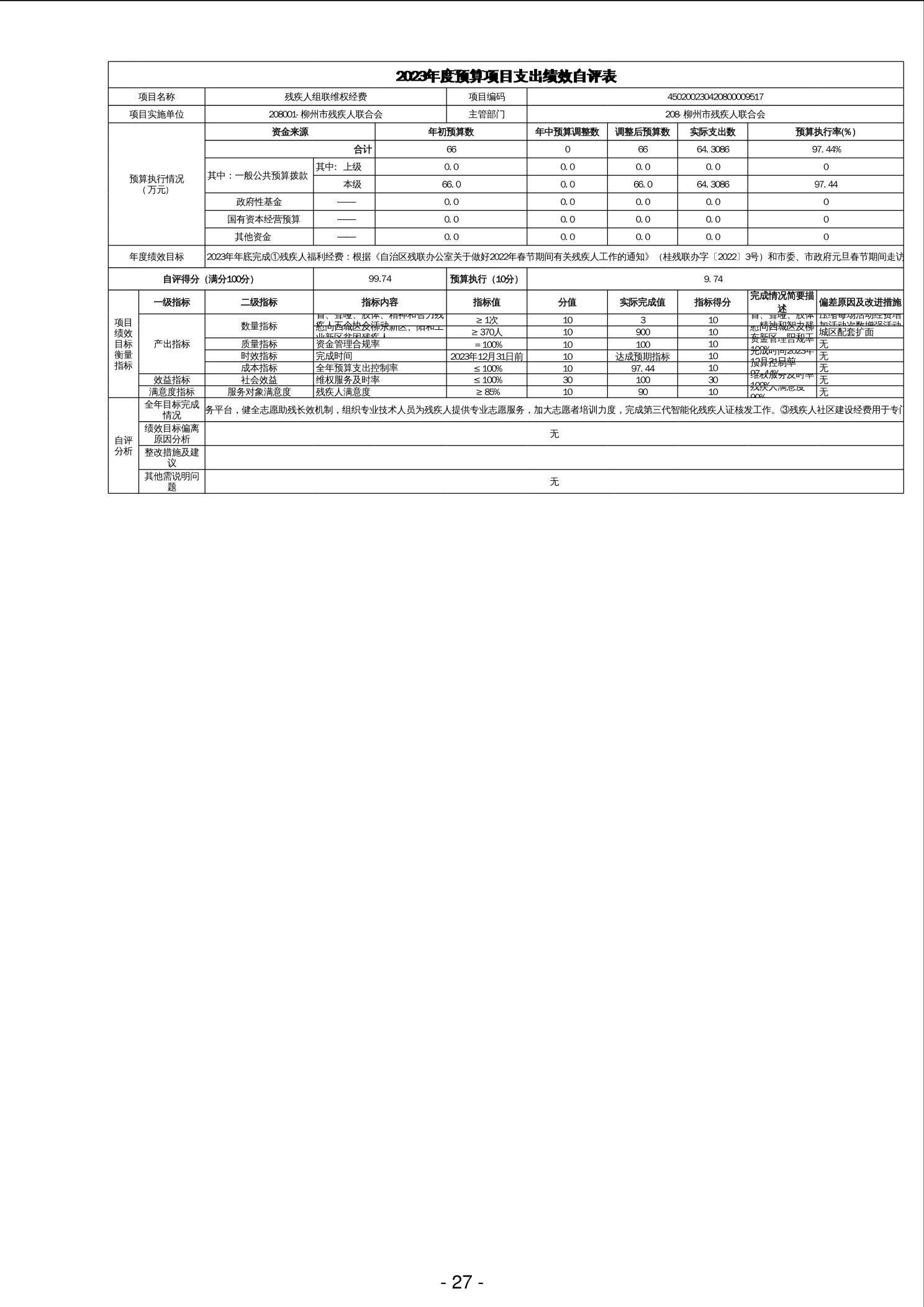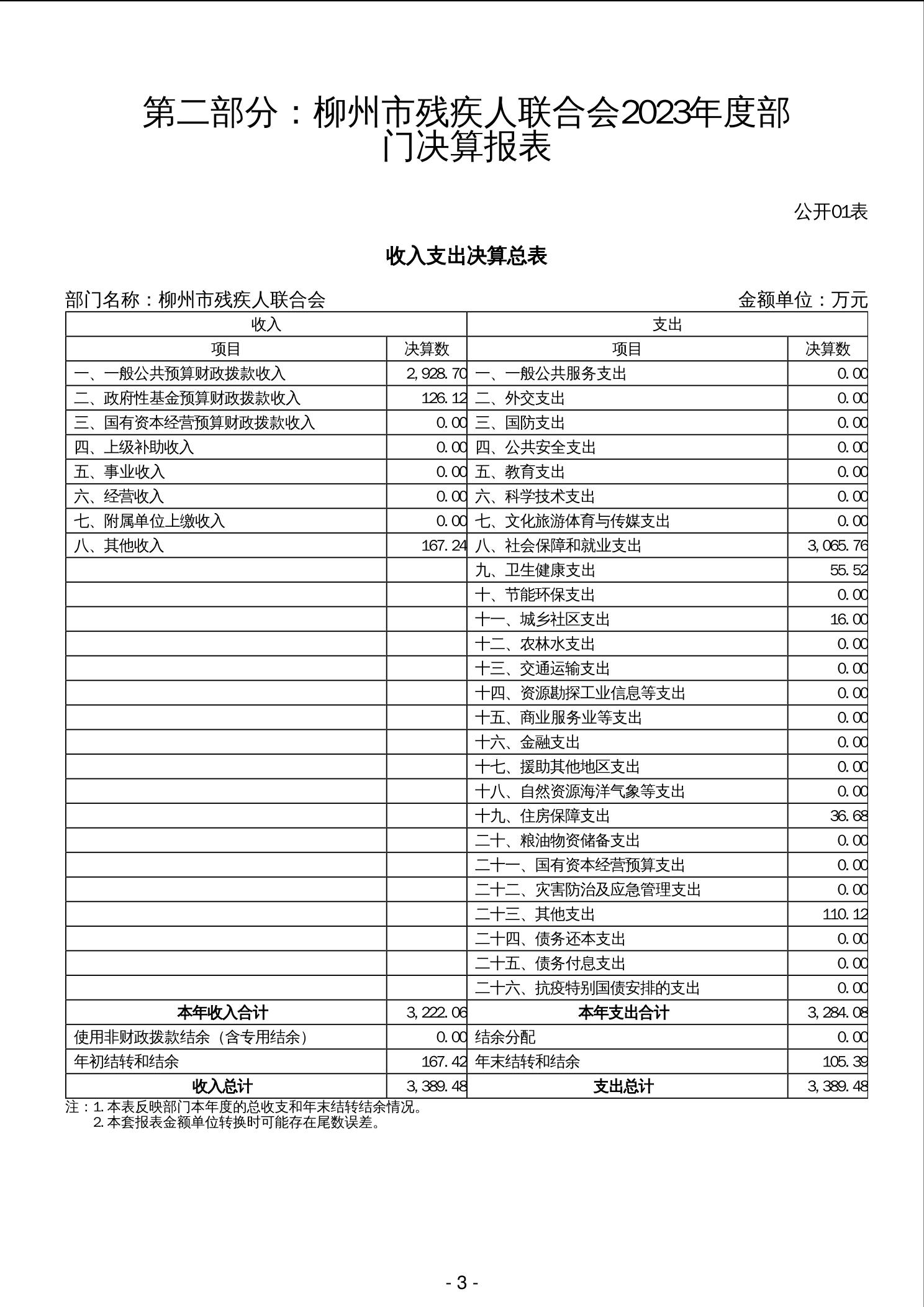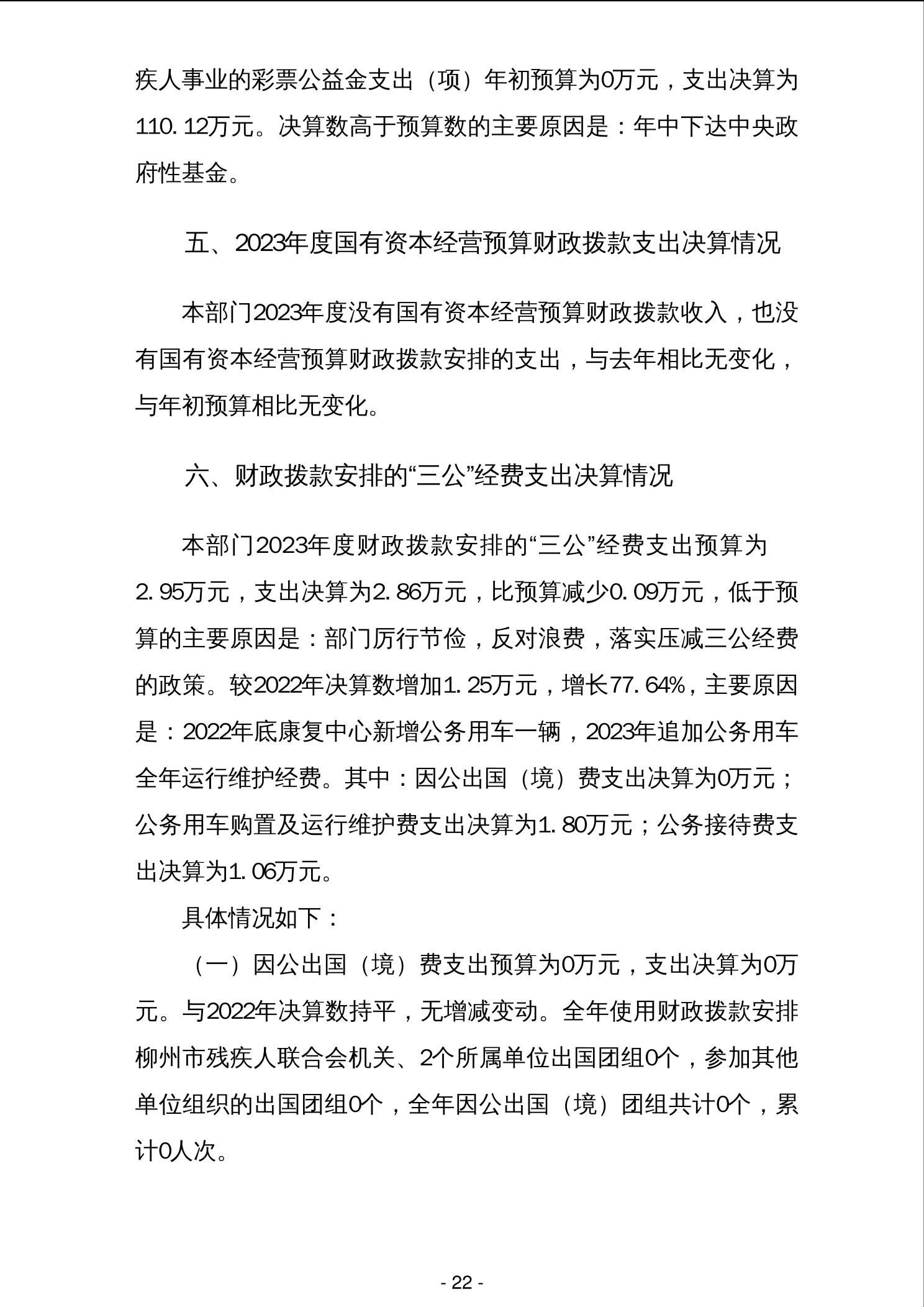 2023年柳州市残疾人联合会部门决算 - 2023 - 广西永利博彩网站