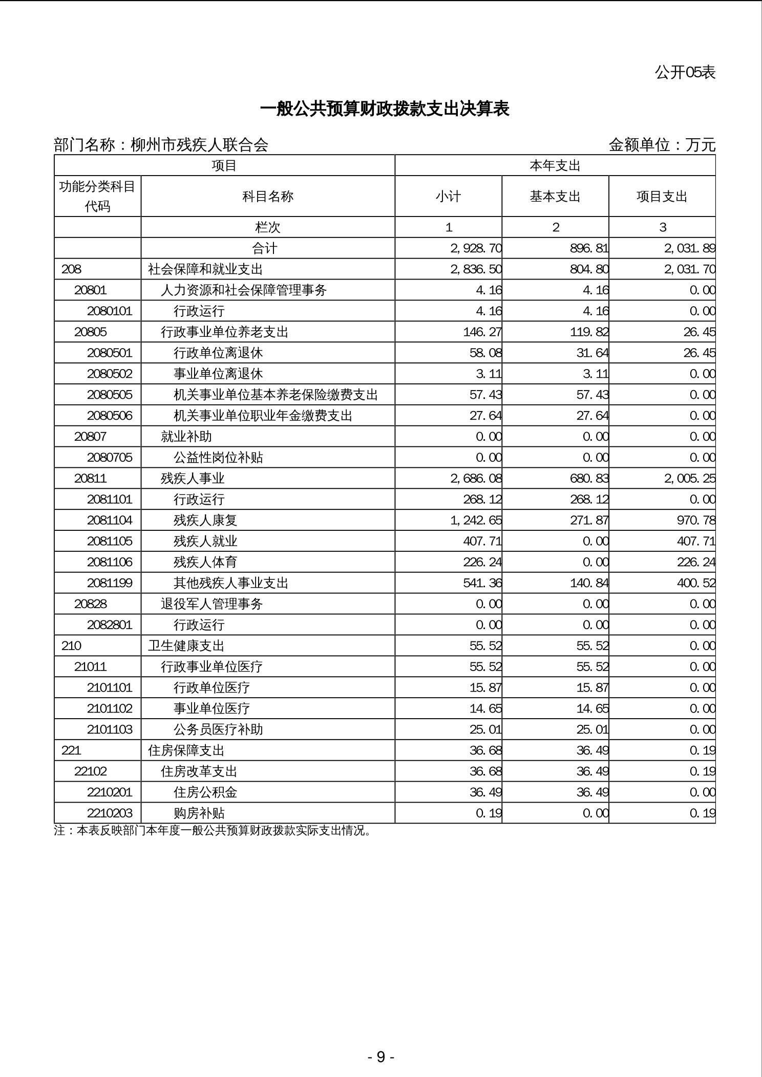柳州市残疾人联合会部门决算公开报表.xlsx