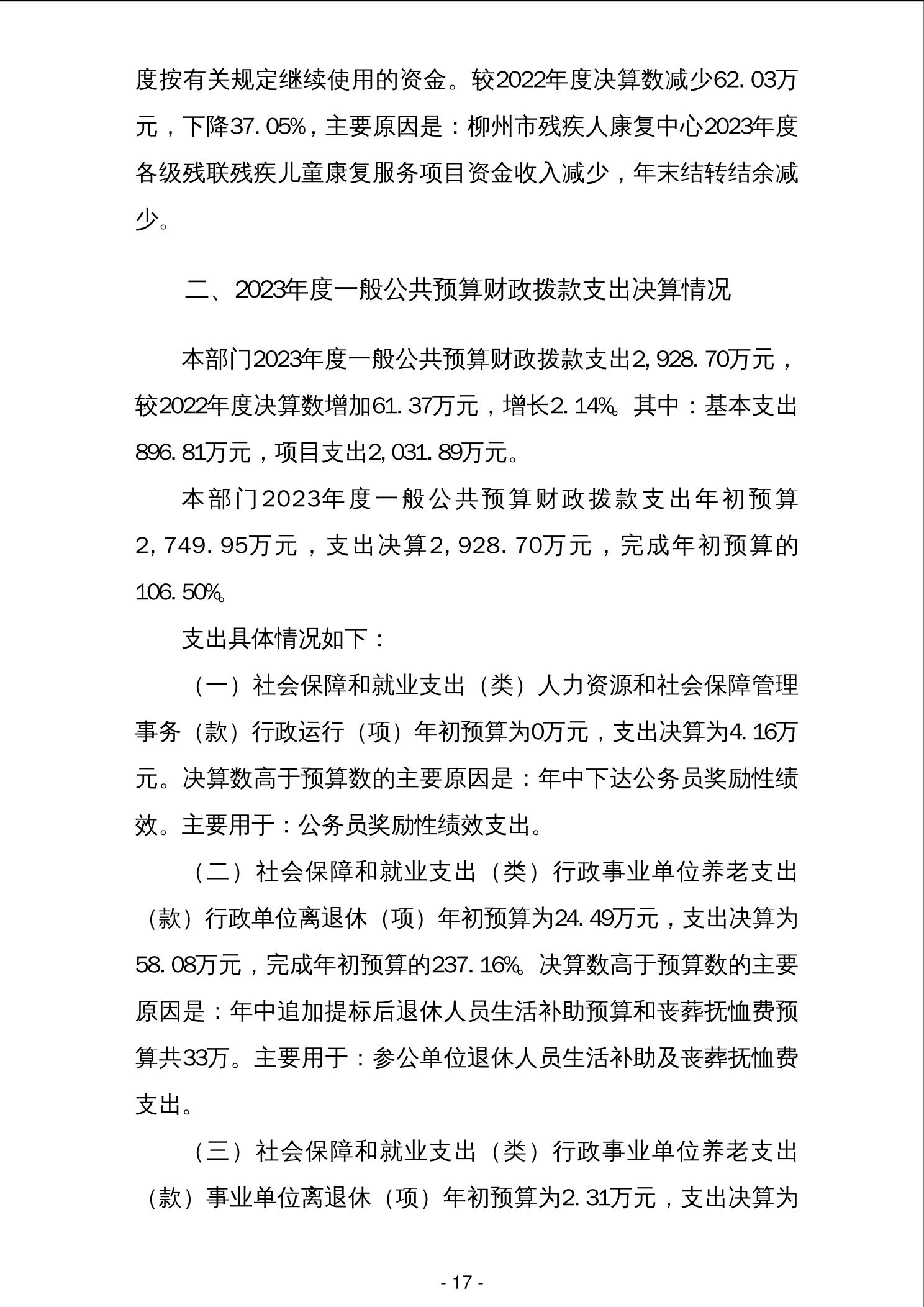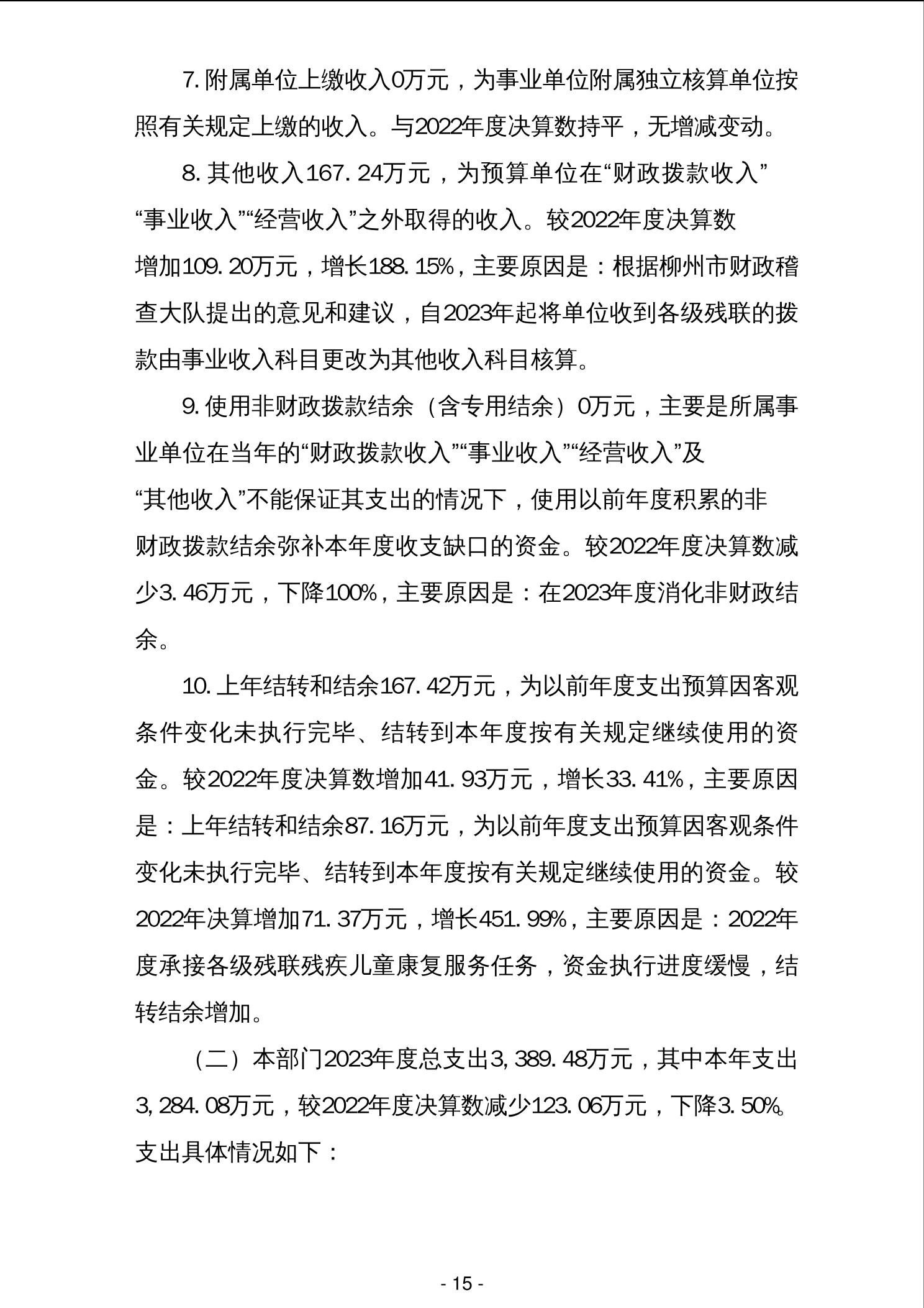 2023年柳州市残疾人联合会部门决算文字说明.pdf