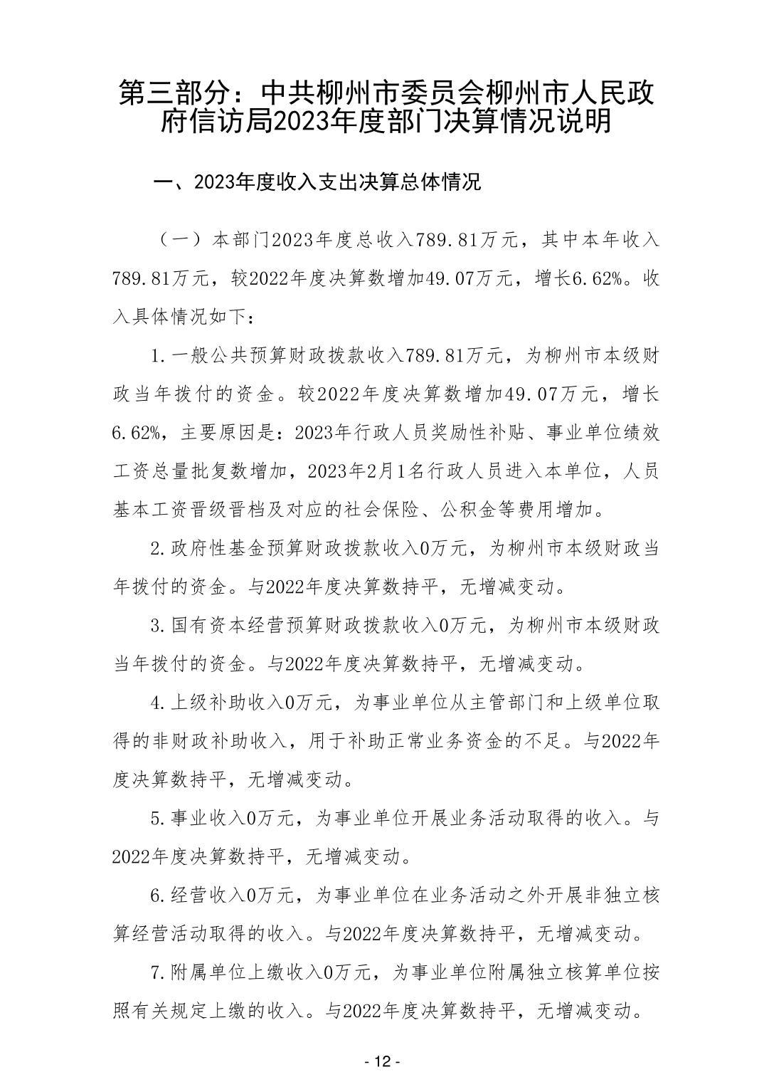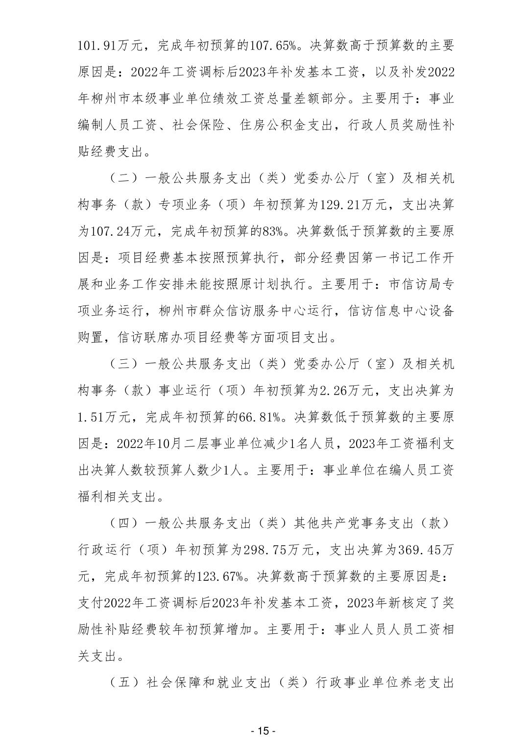 2023年中共柳州市委员会柳州市人民政府信访局部门决算 - 2023 - 广西永利博彩网站