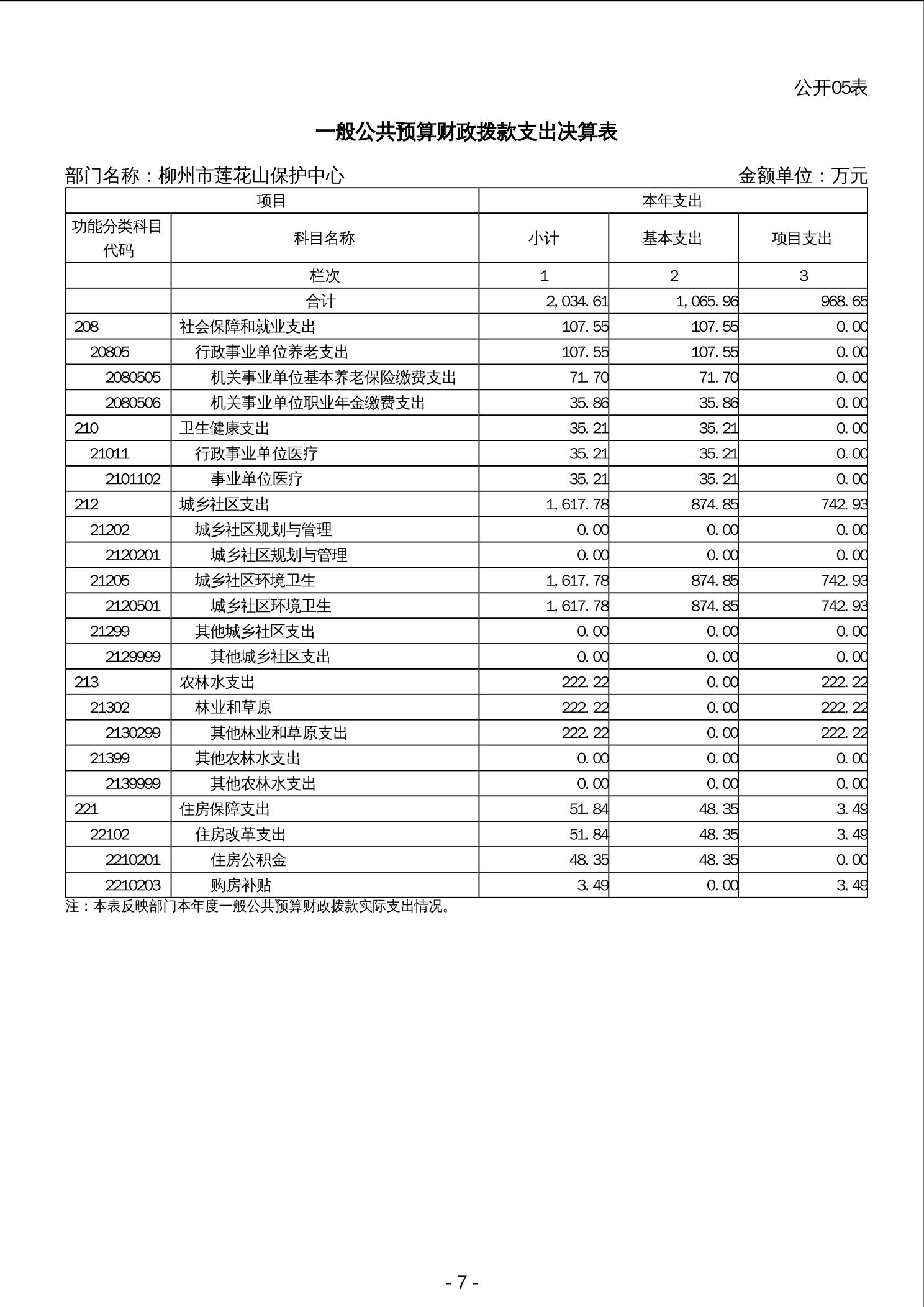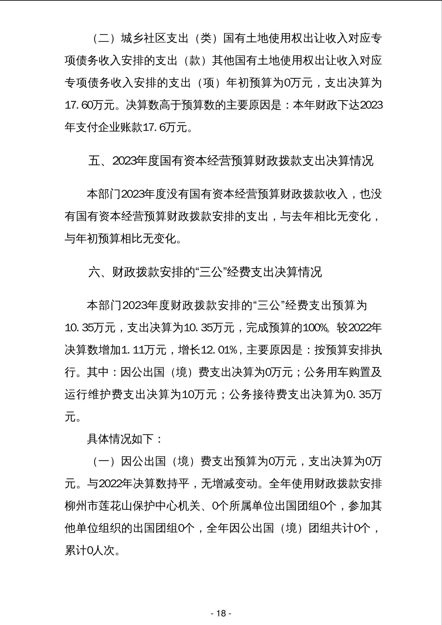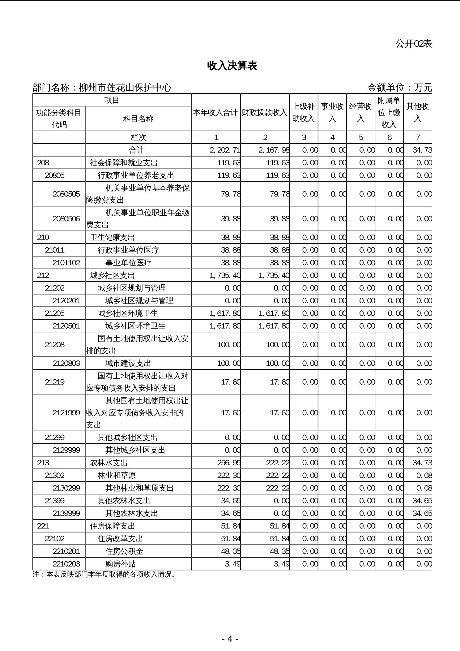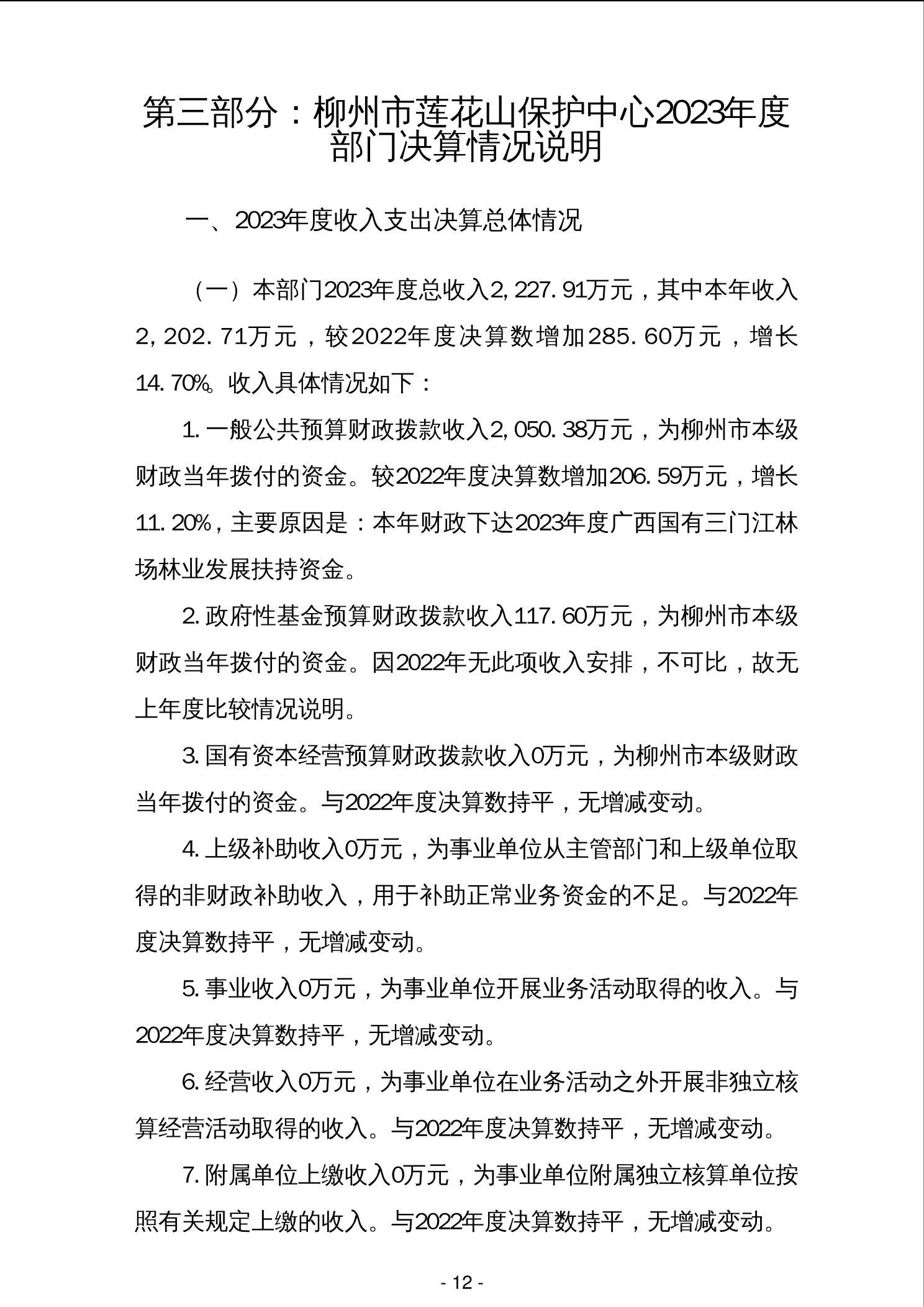 2023年柳州市莲花山保护中心部门决算 - 2023 - 广西永利博彩网站