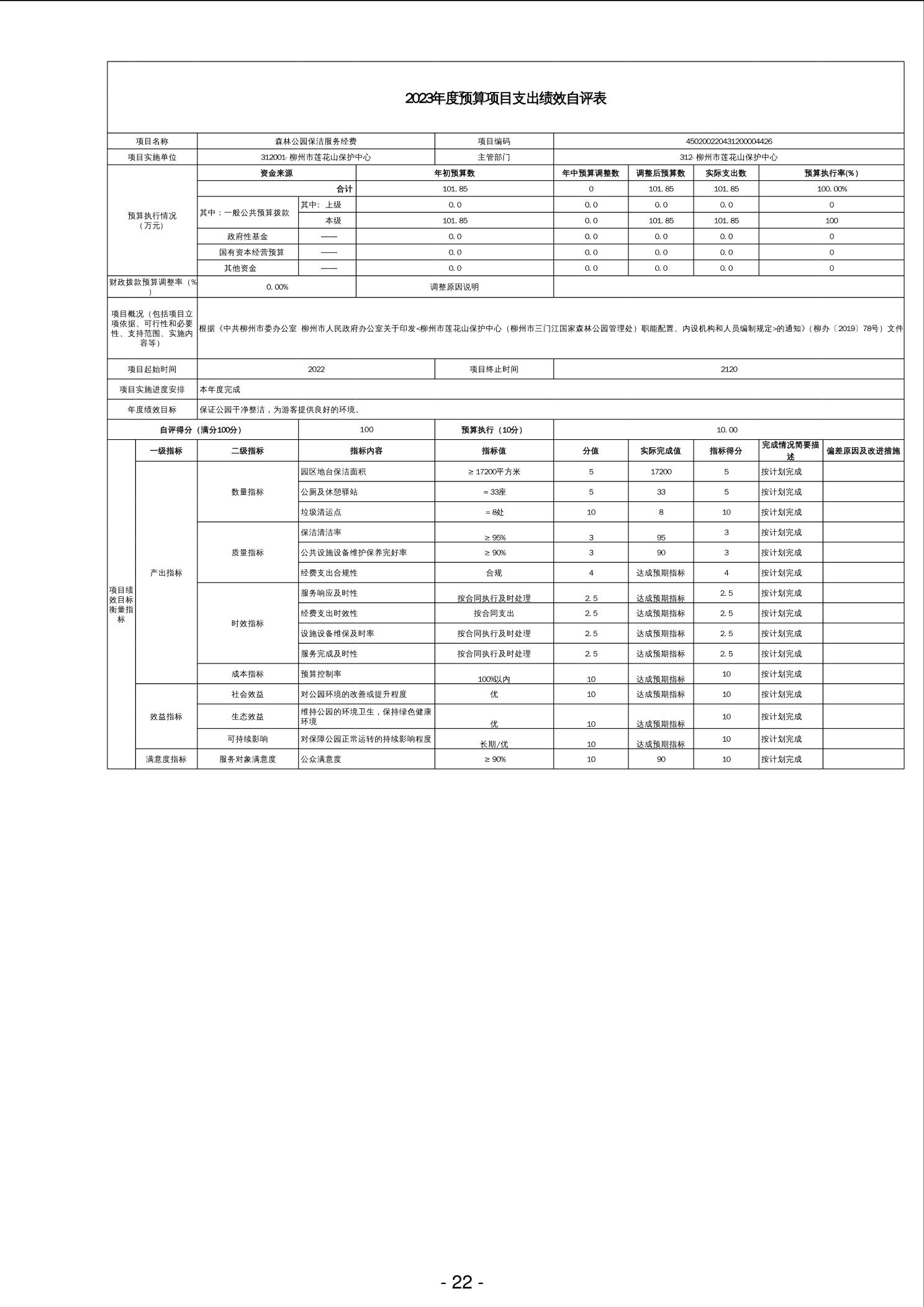 2023年度森林公园保洁服务经费项目支出绩效自评表.xlsx