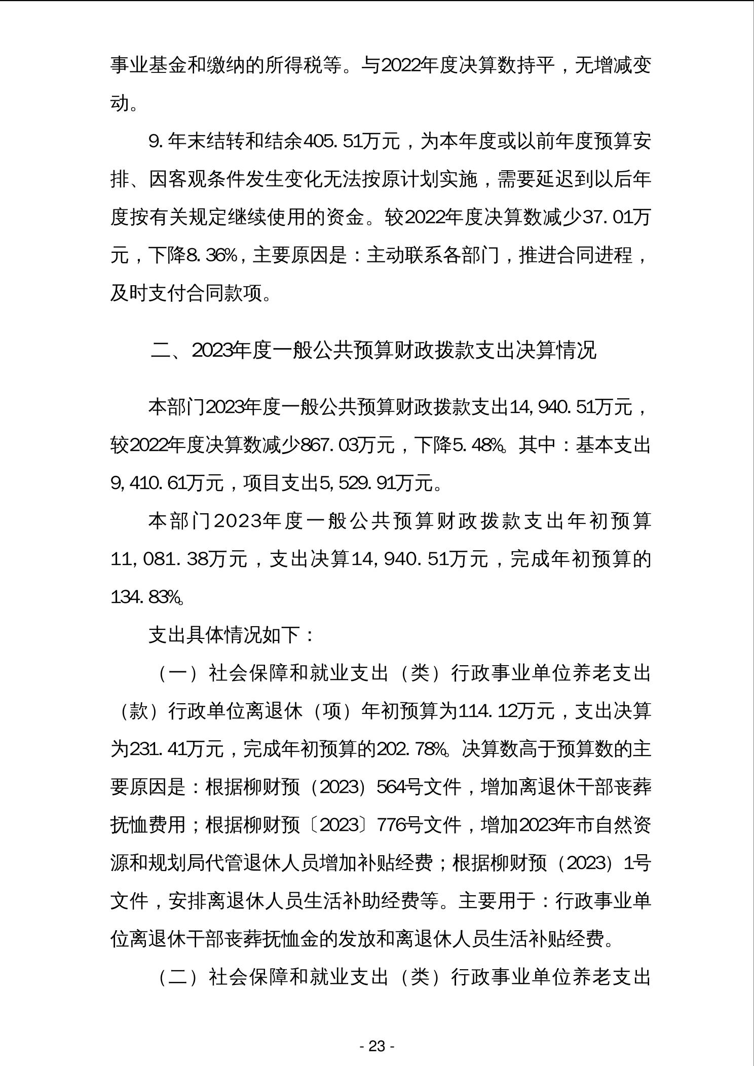 柳州市自然资源和规划局2023年度部门决算 - 2023 - 广西永利博彩网站