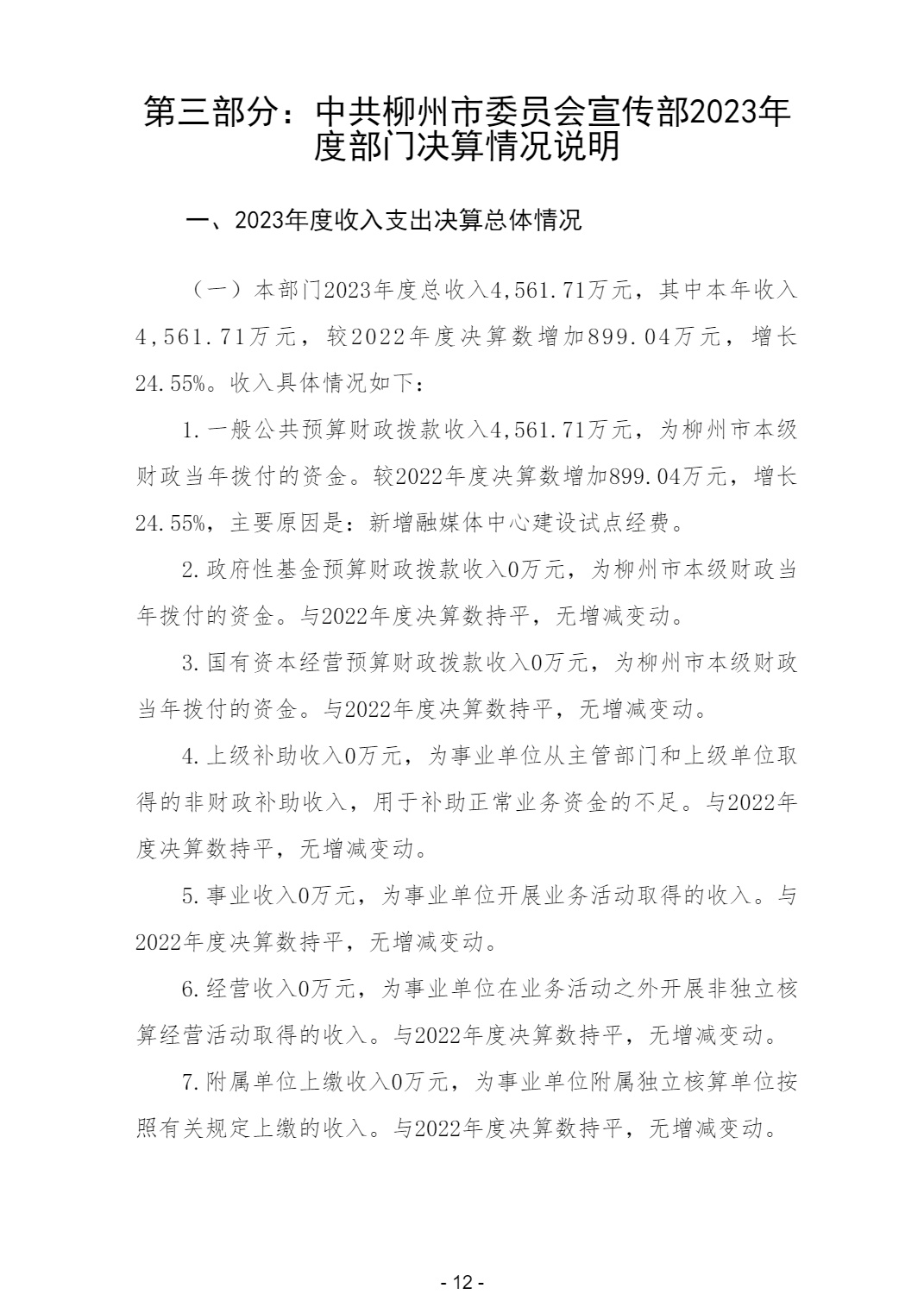 中共柳州市委员会宣传部2023年度部门决算