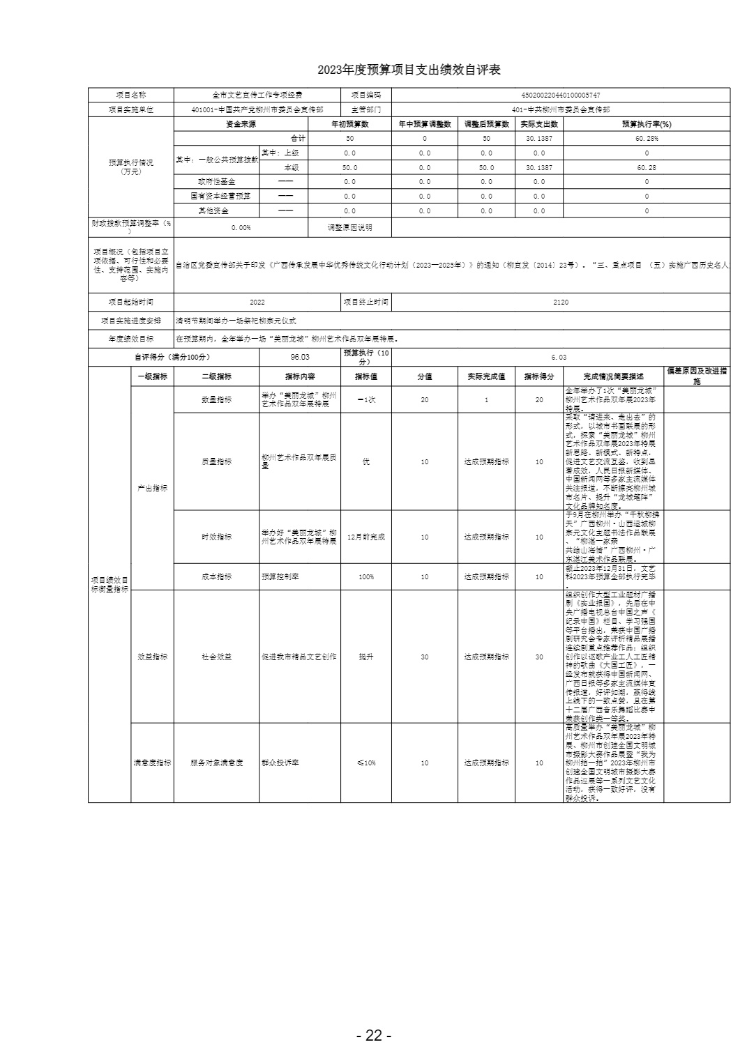 项目支出绩效自评表_401001中国共产党柳州市委员会宣传部_450200220440100005747全市文艺宣传工作专项经费_202407121758260.xlsx