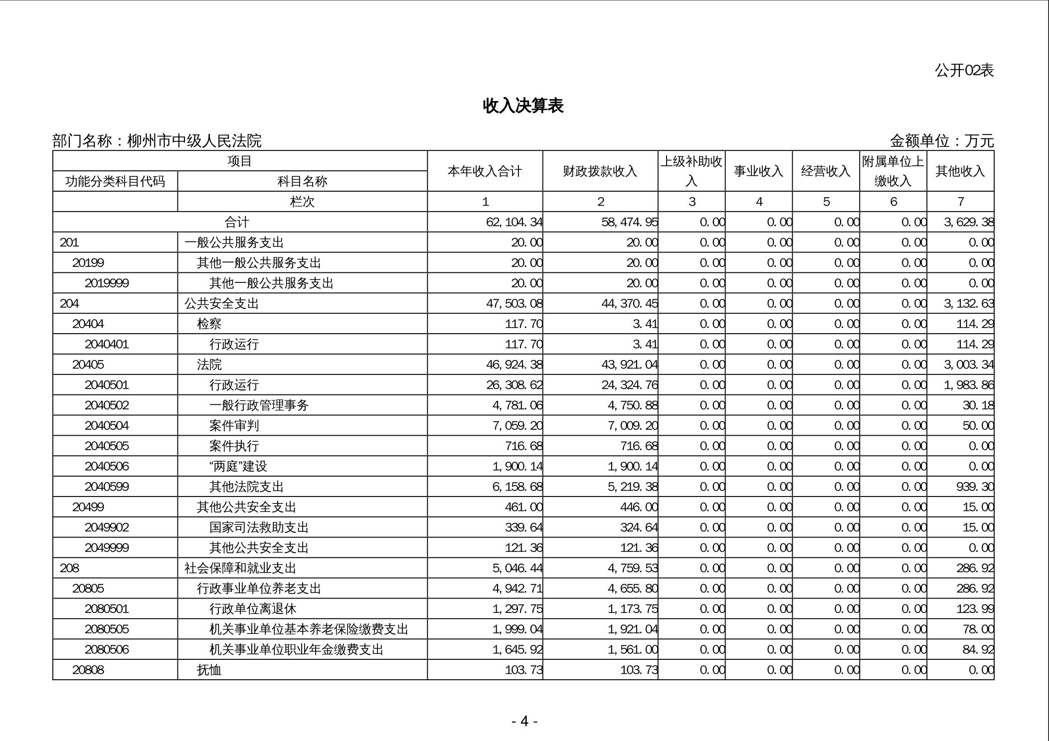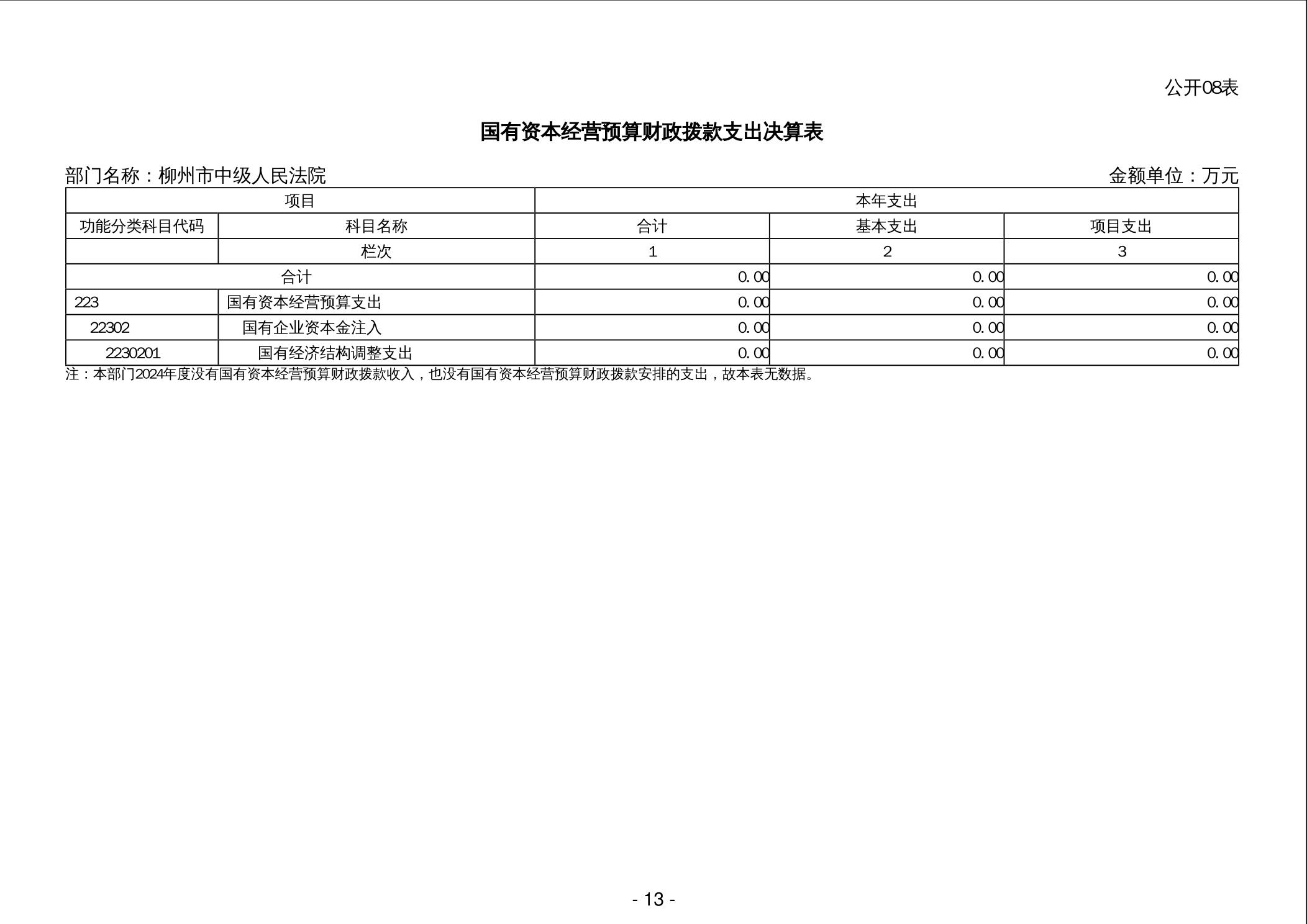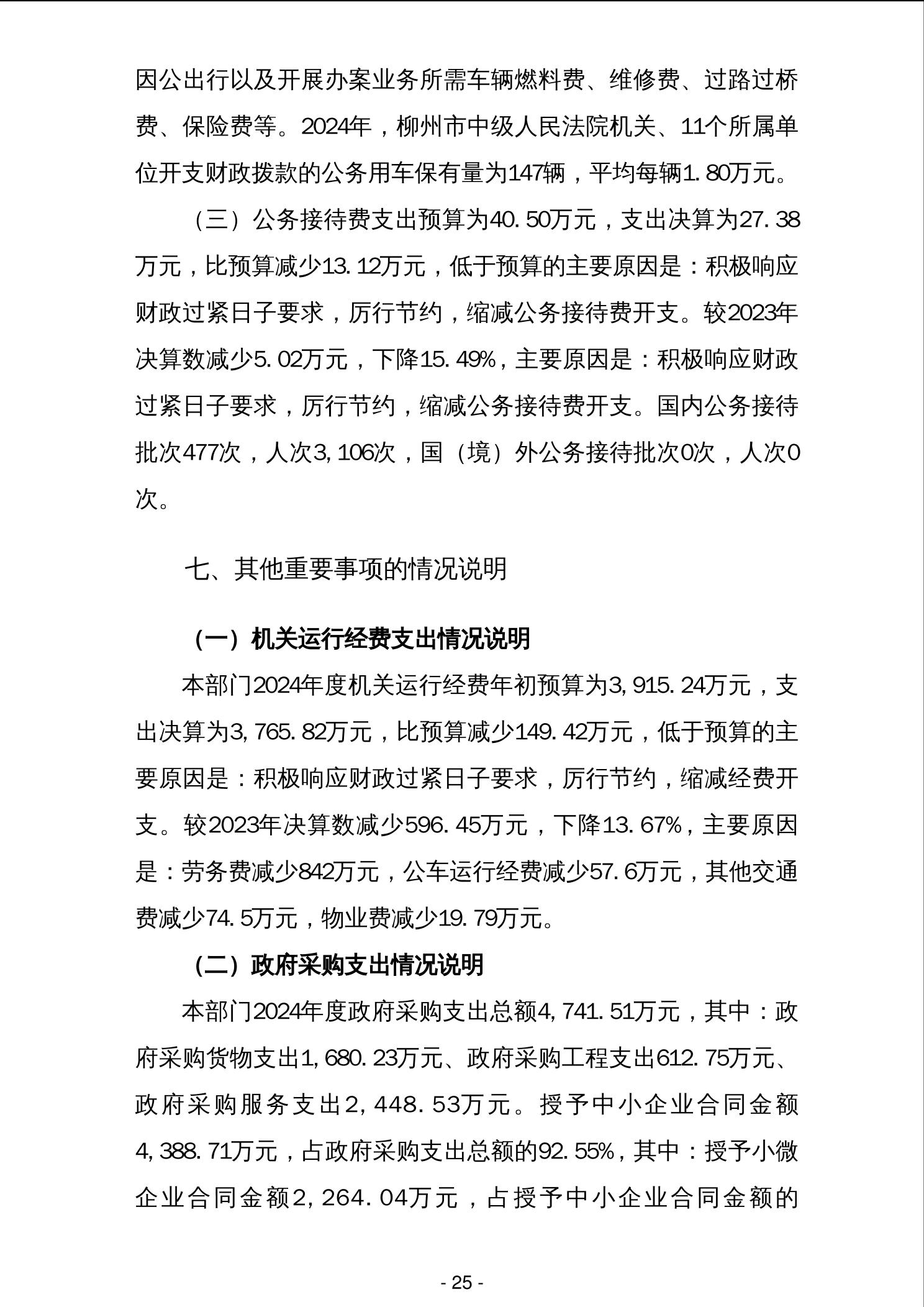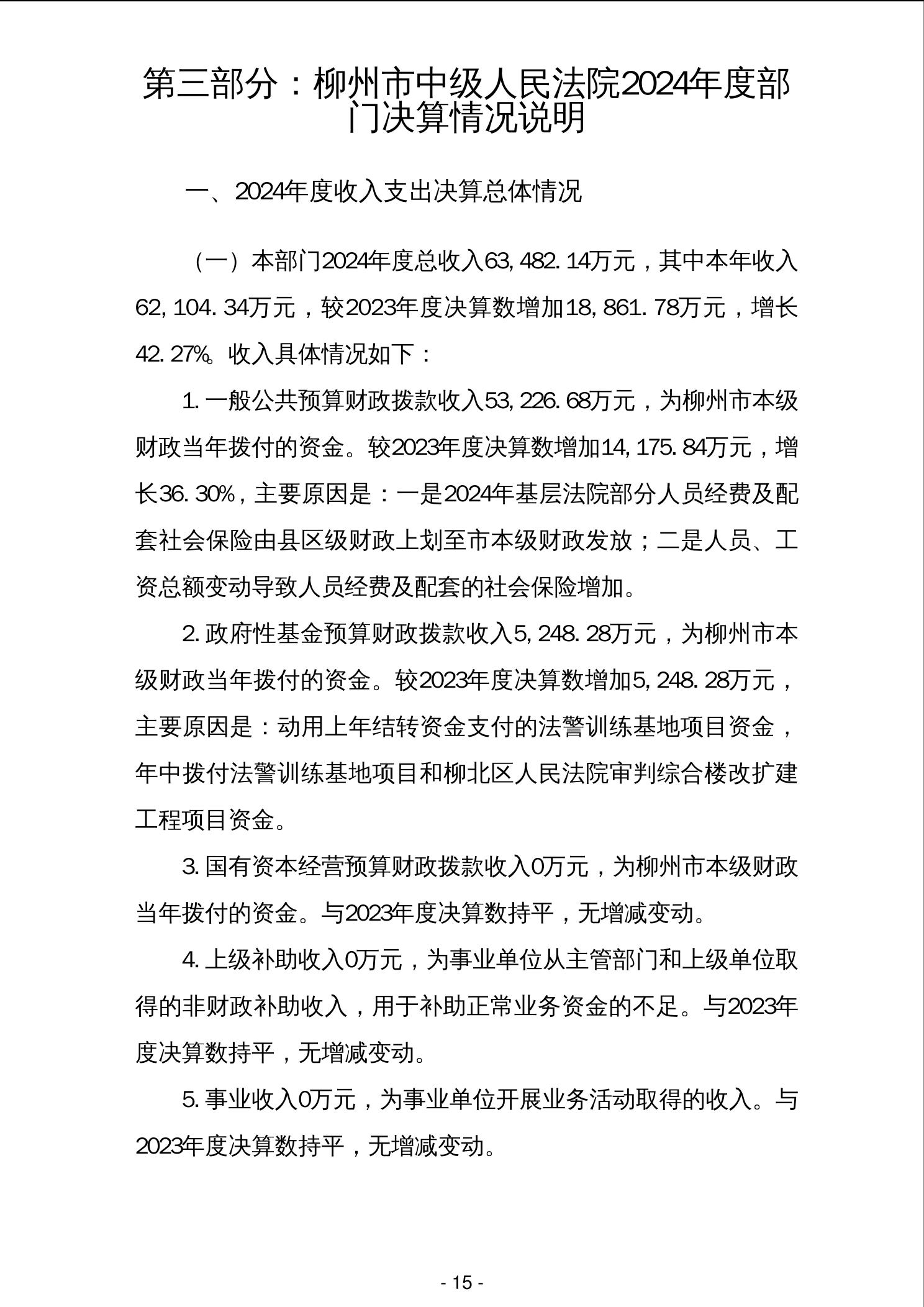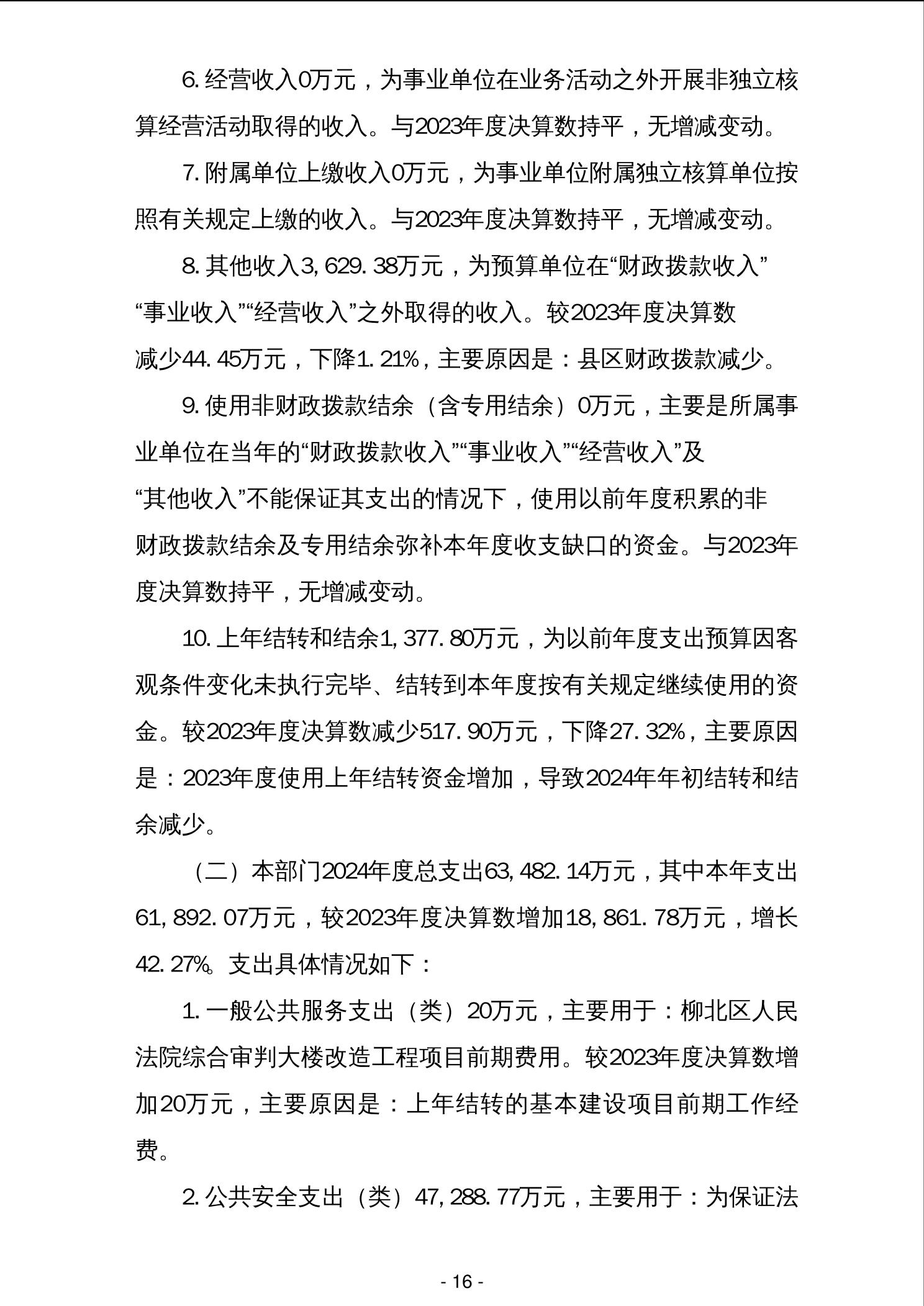 柳州市中级人民法院2024年度部门决算