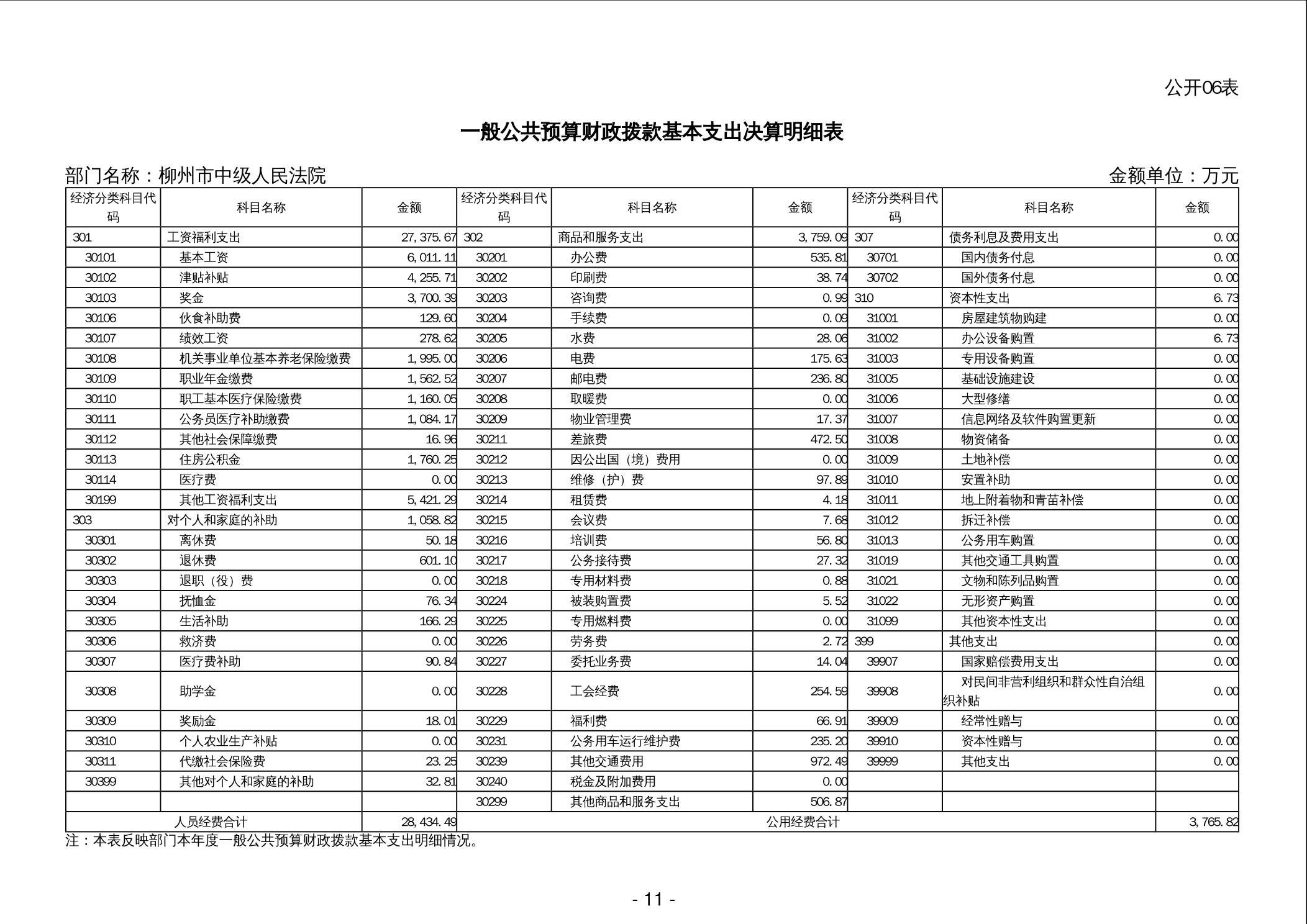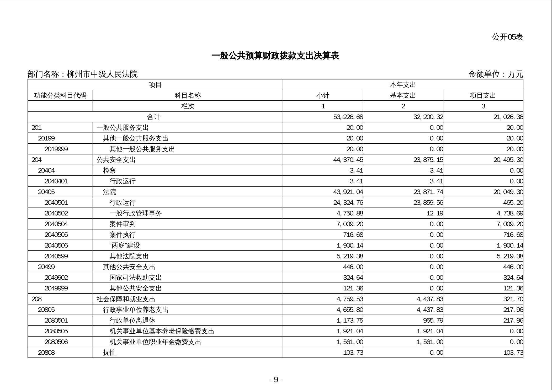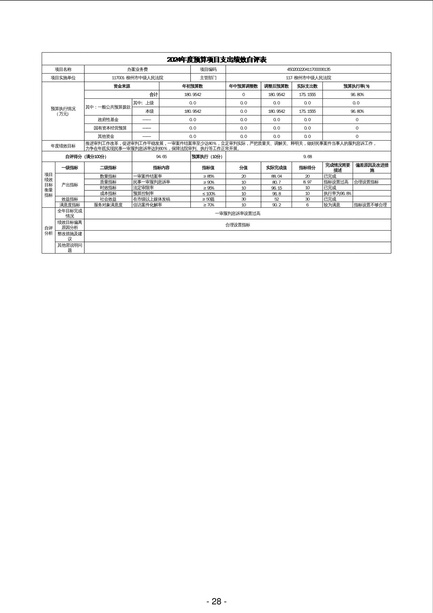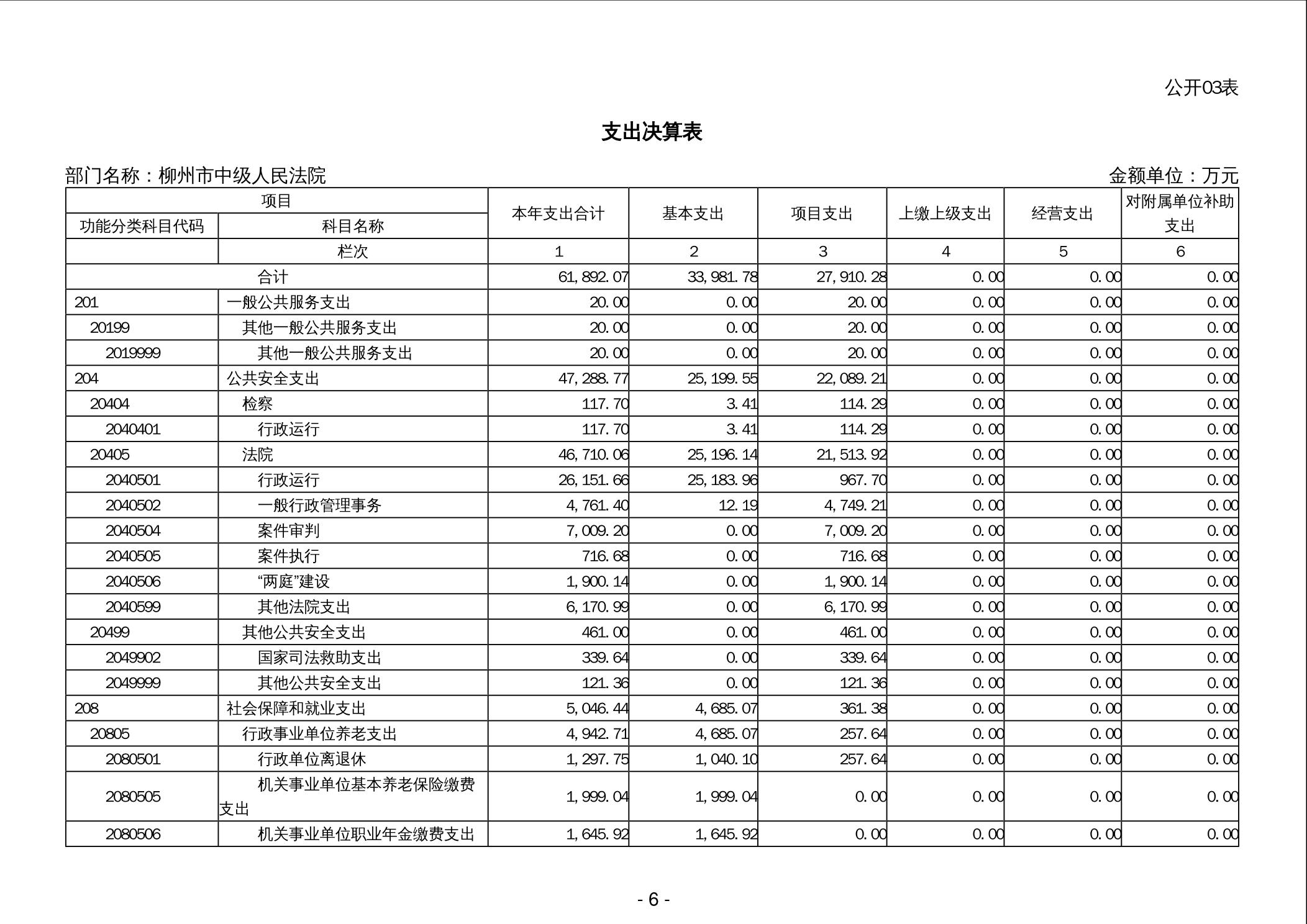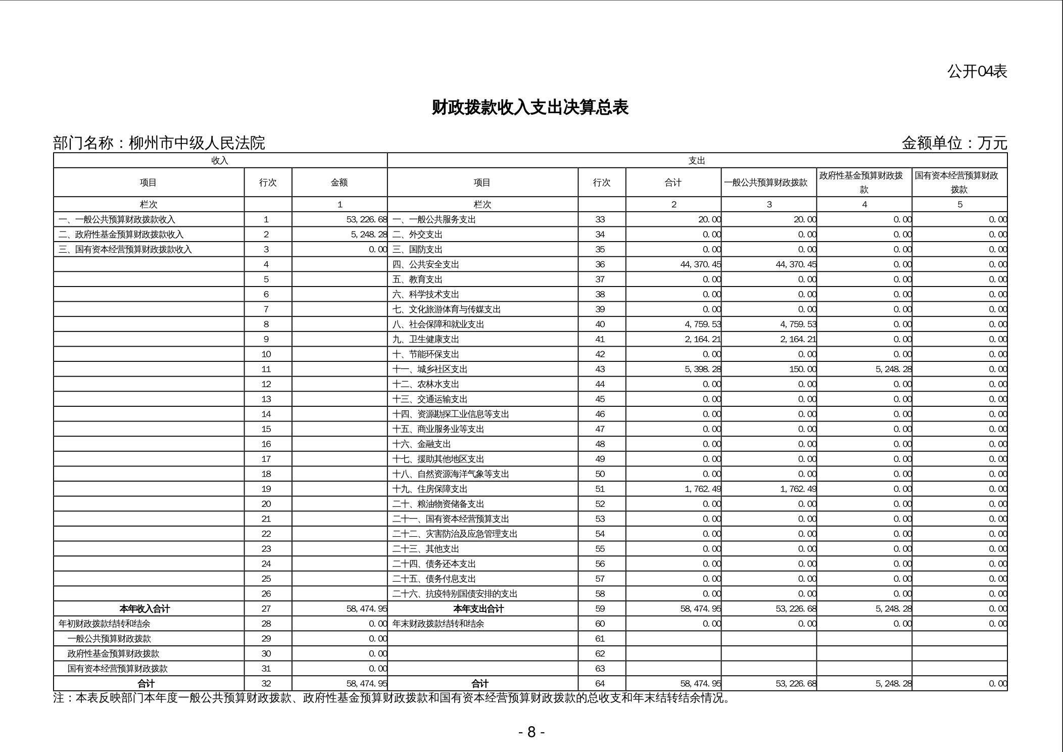 柳州市中级人民法院2024年度部门决算