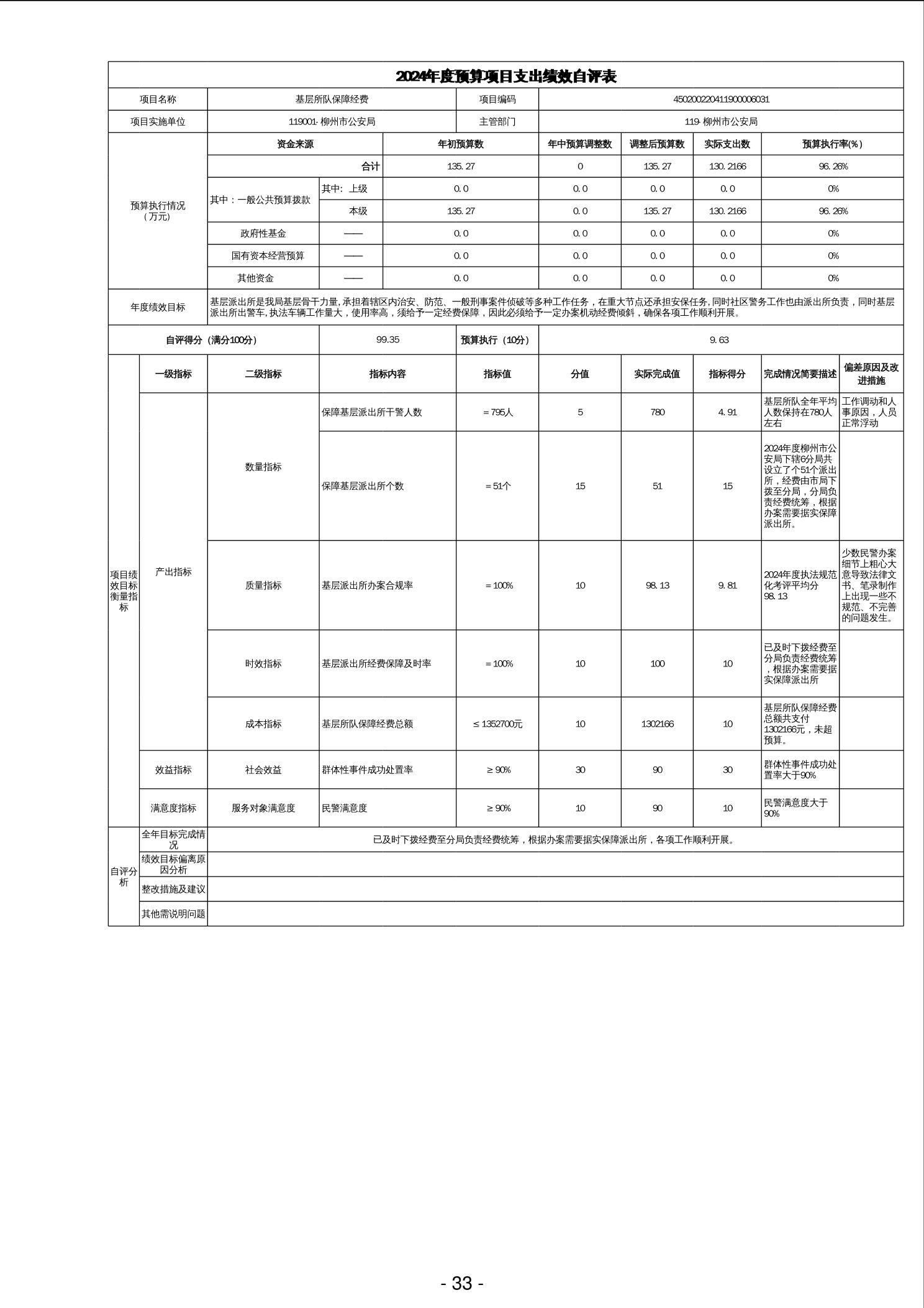 柳州市公安局(基层所队保障经费)项目支出绩效自评表2024年度.xlsx