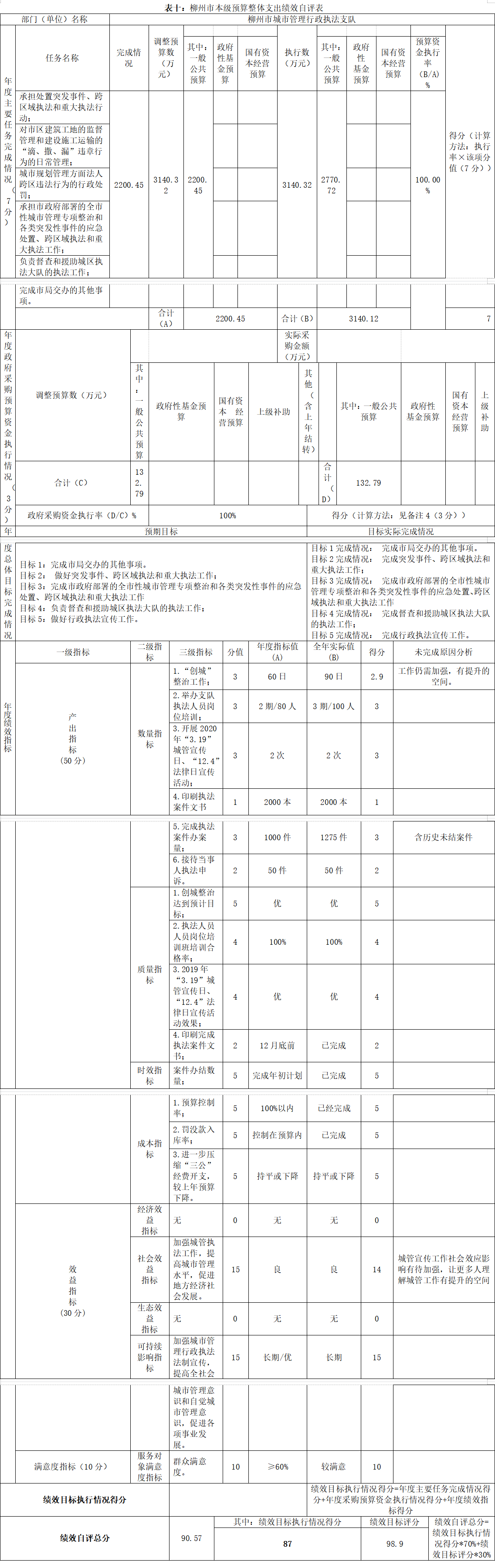 第二部分:柳州市城市管理行政执法支队2020年部门决算报表