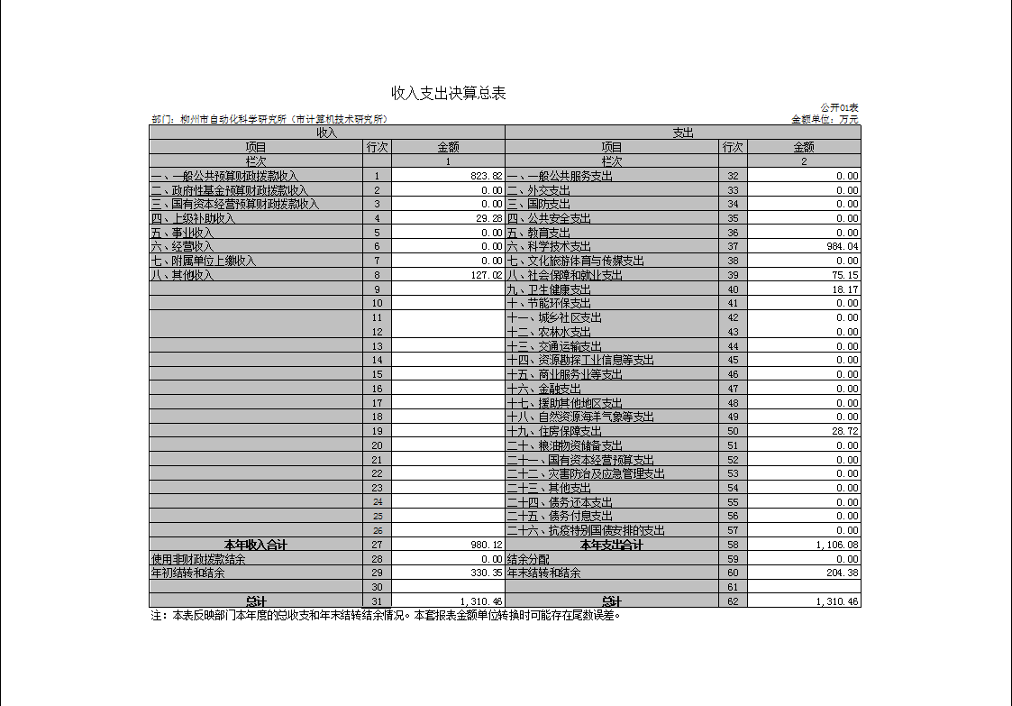 第二部分:柳州市智能制造科技服务中心(柳州市自动化科学研究所)2020年部门决算报表