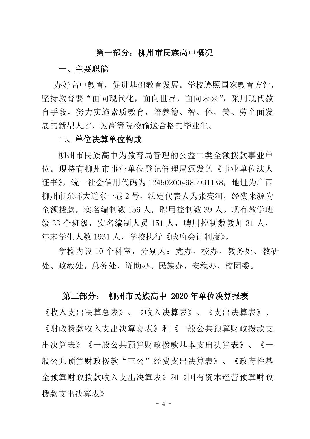 柳州市本级2020年度单位决算公开(柳州市民族高中).docx