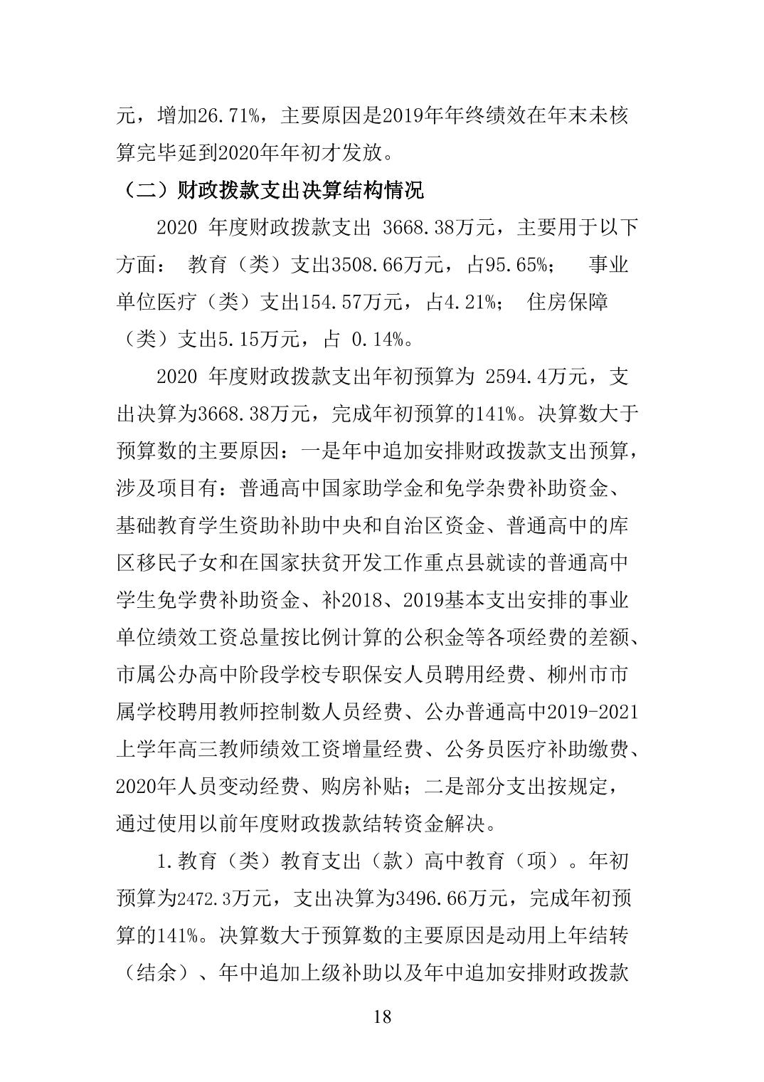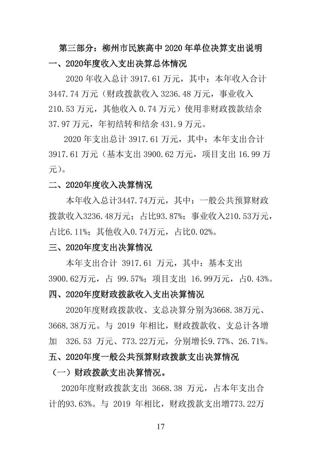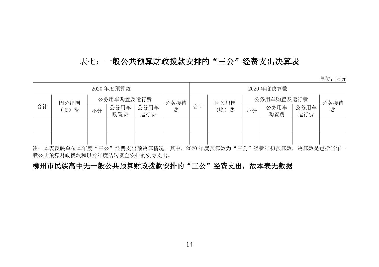 柳州市民族高中2020年度单位决算