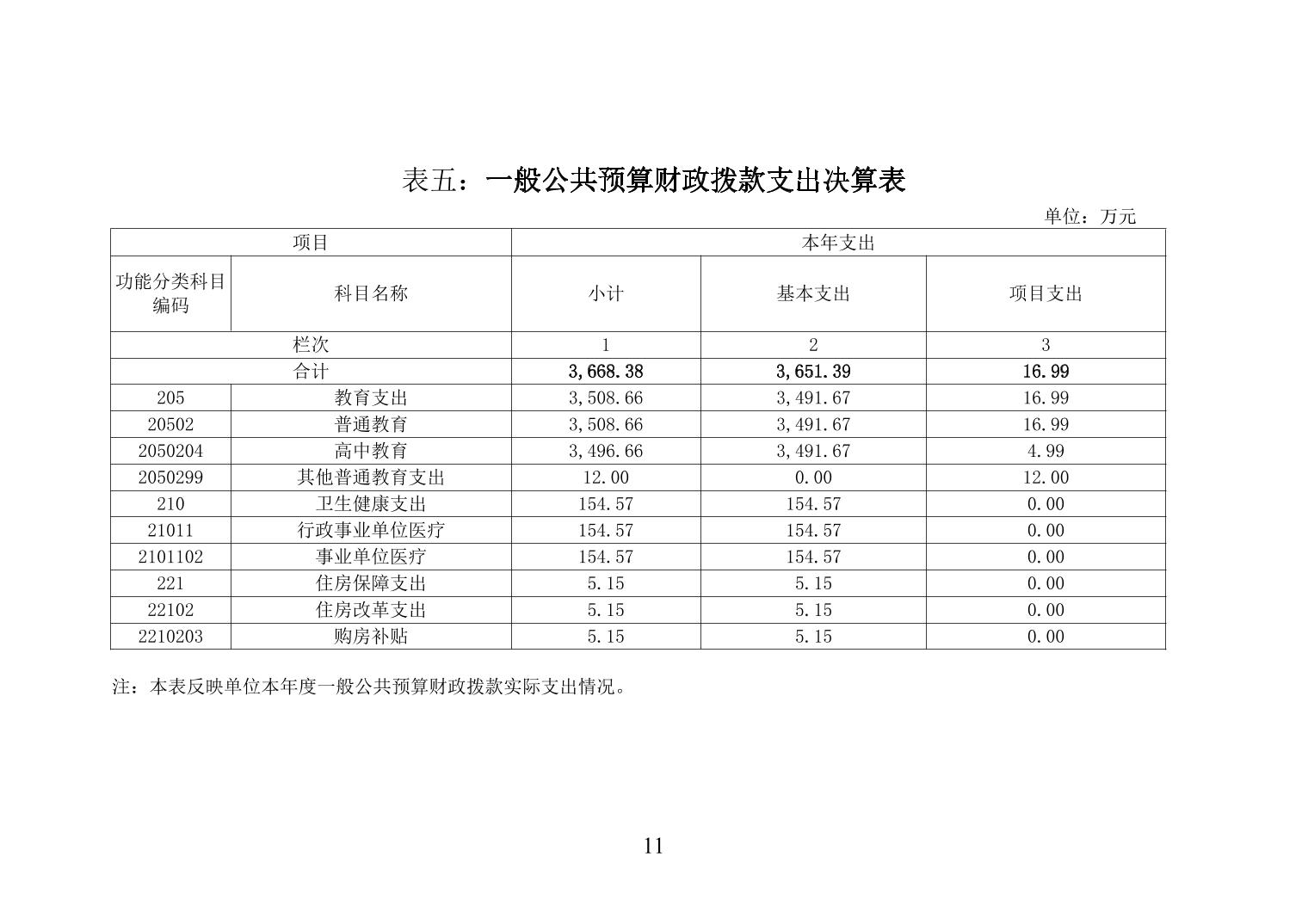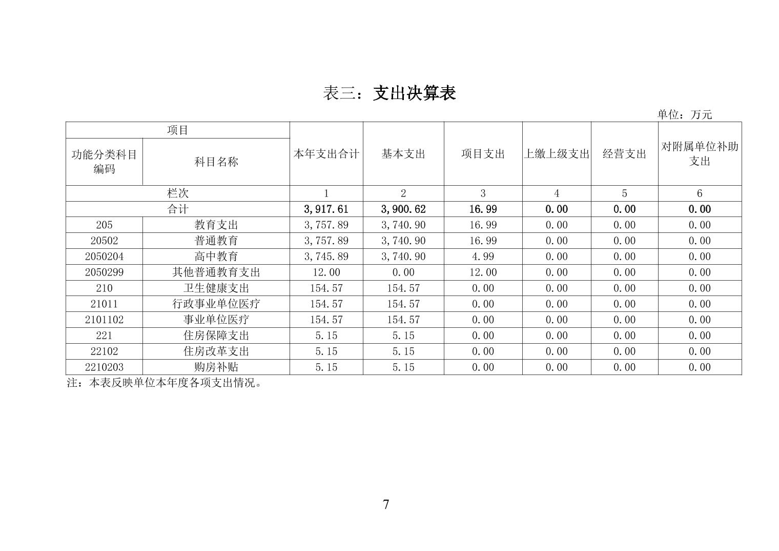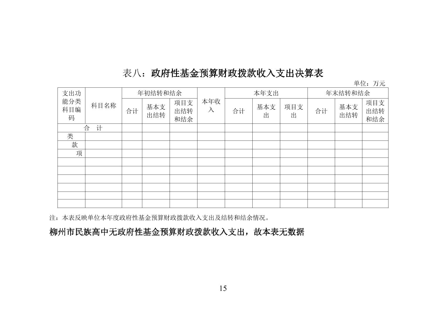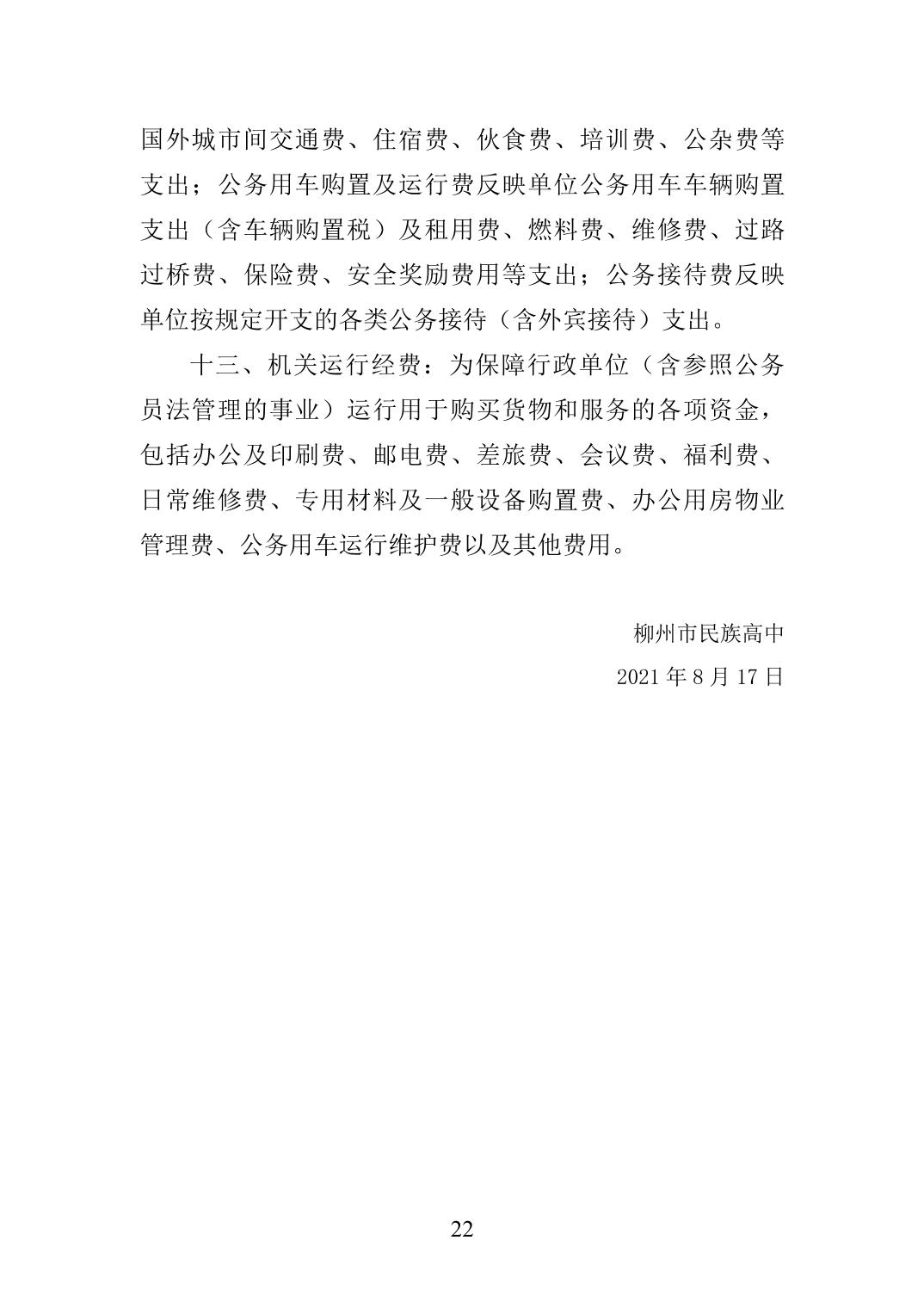柳州市民族高中2020年度单位决算