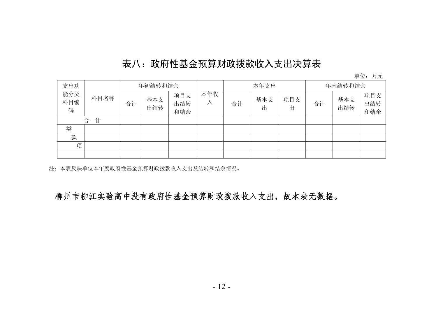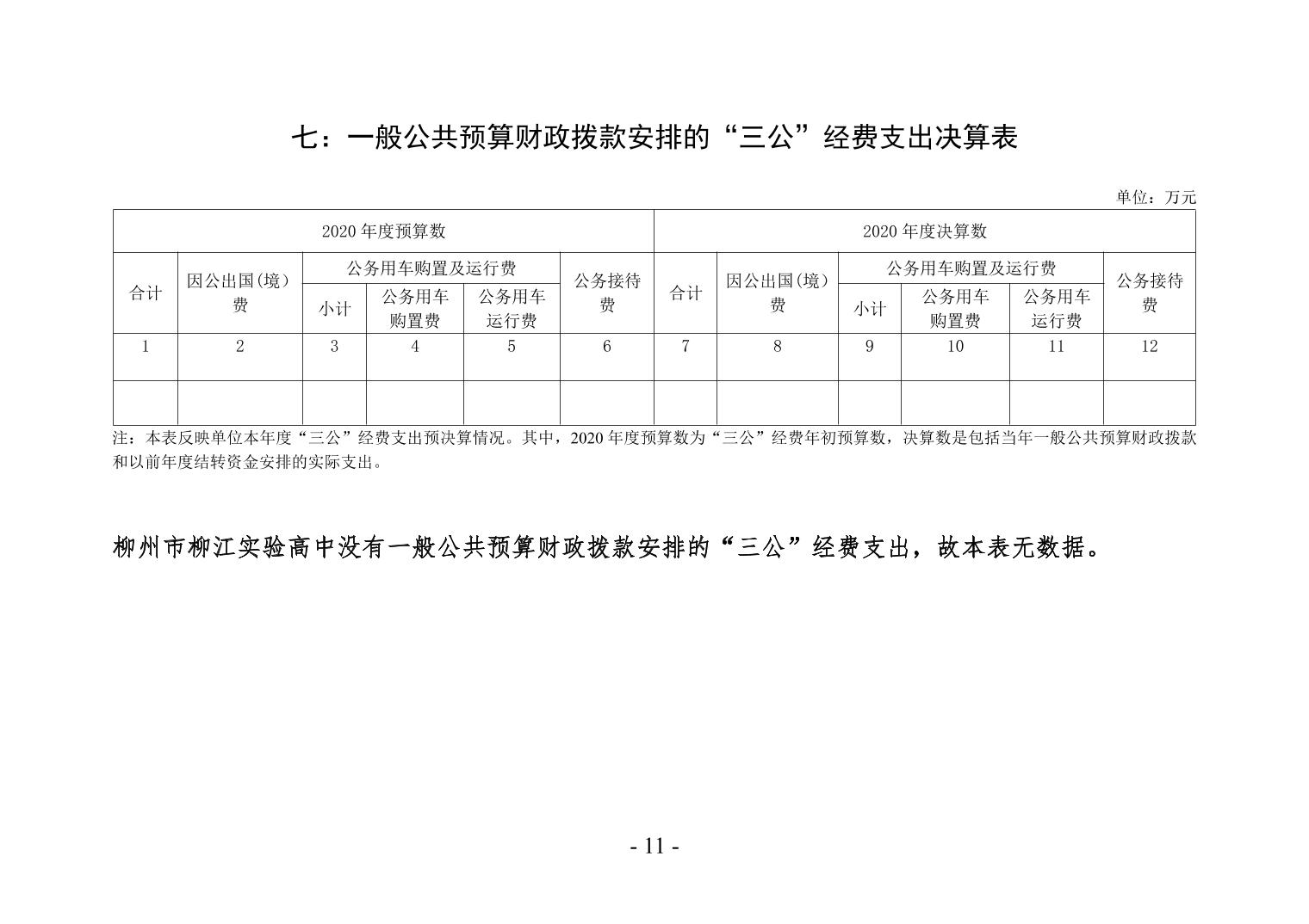 柳州市柳江实验高中2020年度单位决算