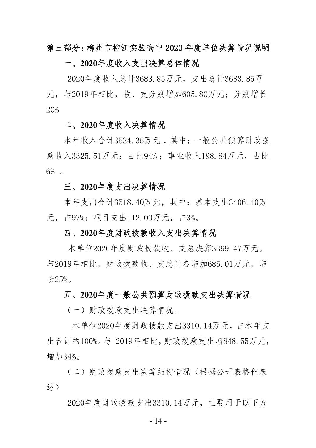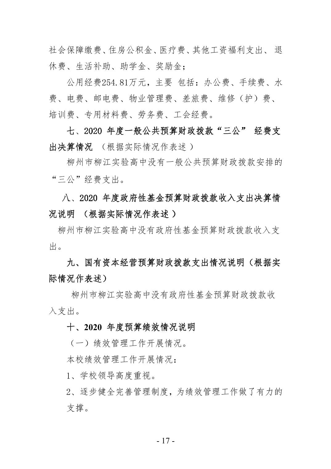 柳州市柳江实验高中2020年度部门决算公开.docx
