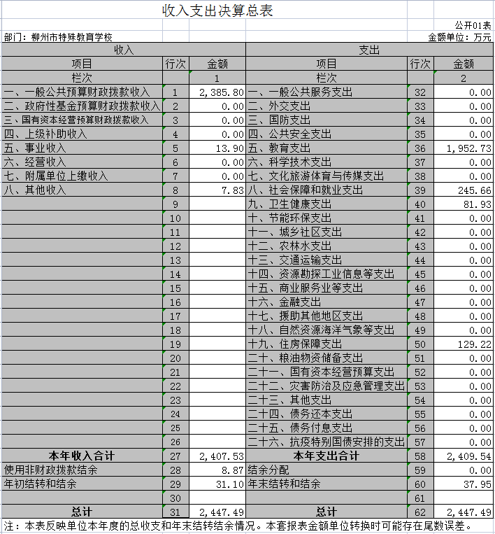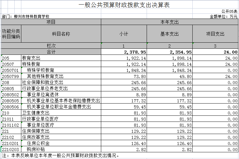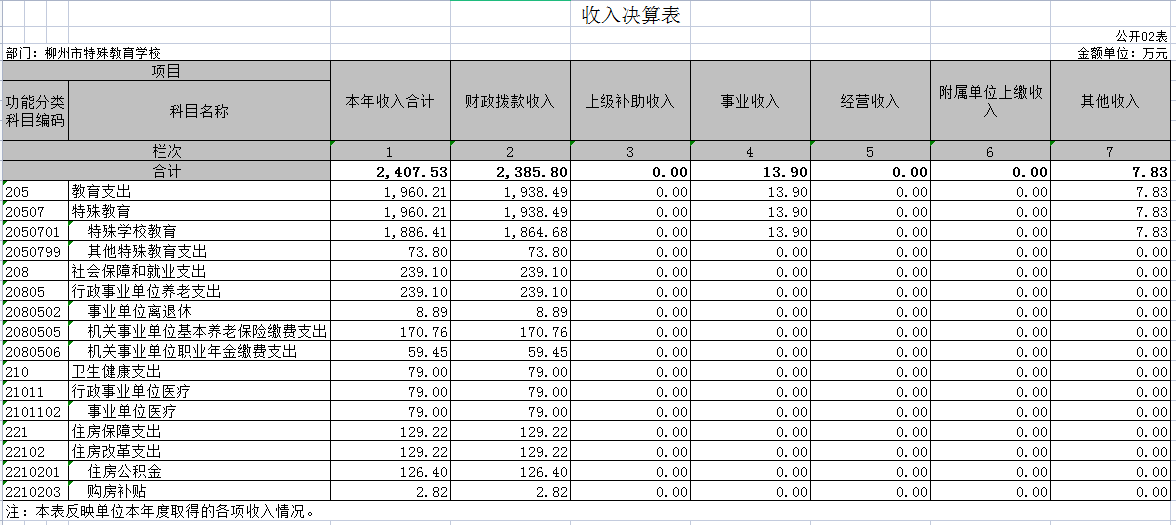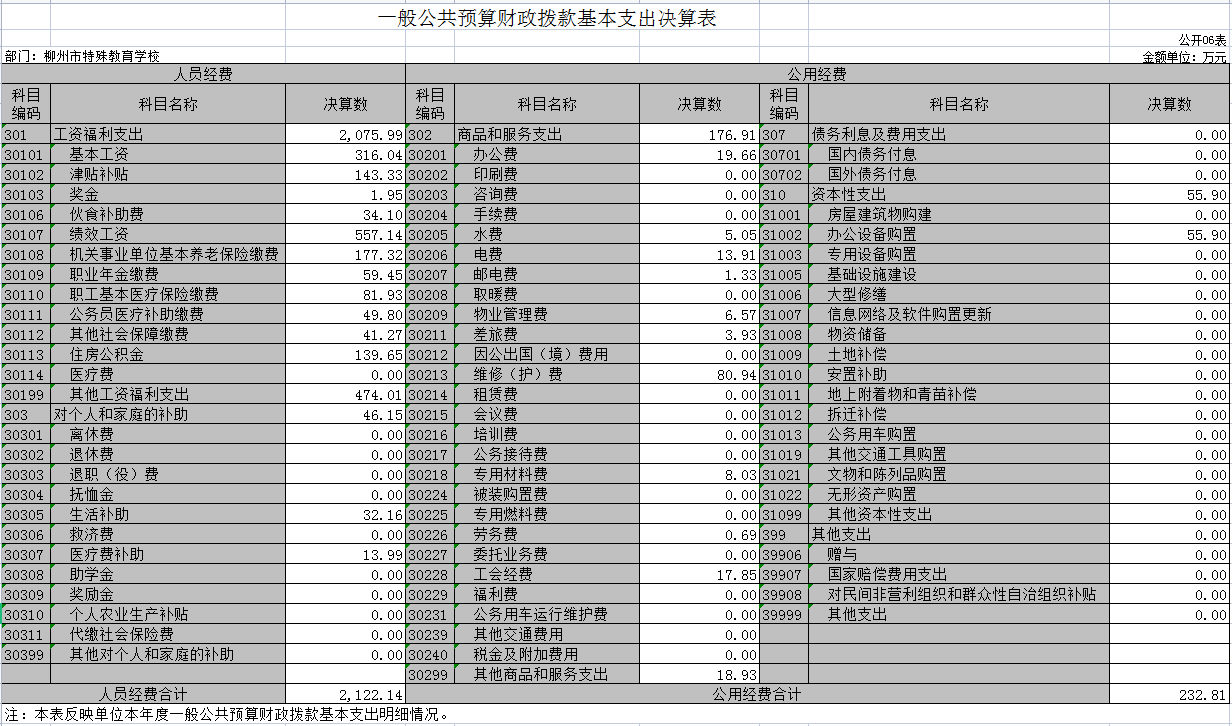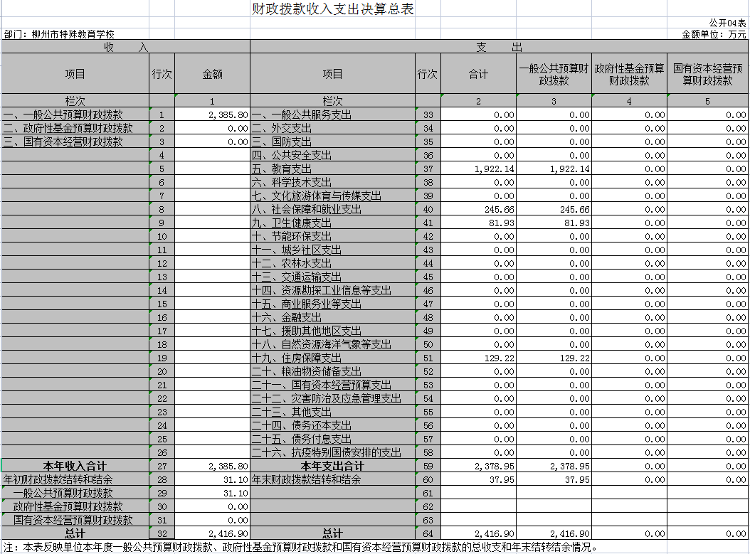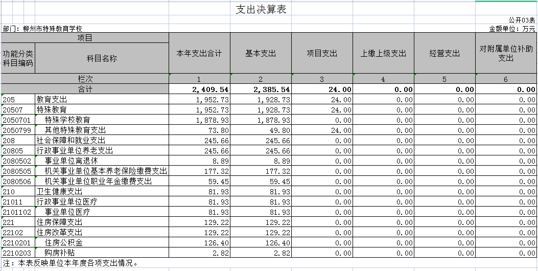 第二部分:柳州市特殊教育学校2020年单位决算报表