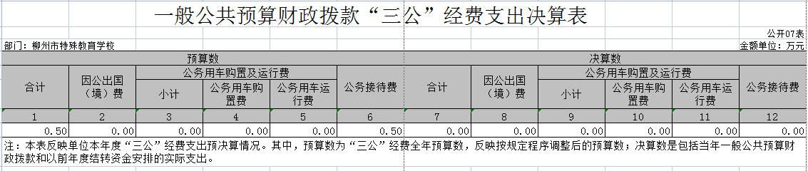 表七:一般公共预算财政拨款安排的“三公”经费支出决算表