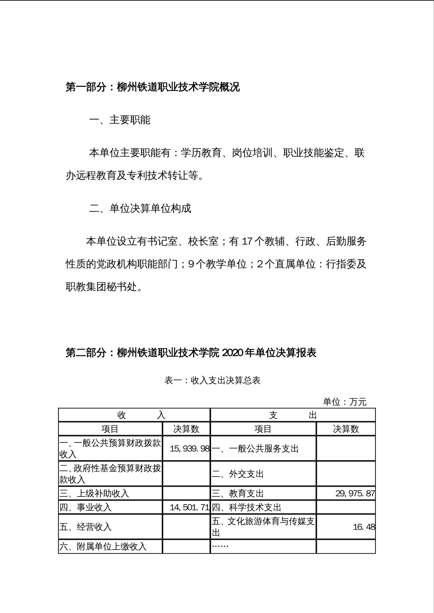 柳铁职院2020年单位决算公开.docx