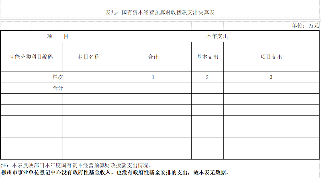柳州市事业单位登记中心没有政府性基金收入,也没有政府性基金安排的支出,故本表无数据。