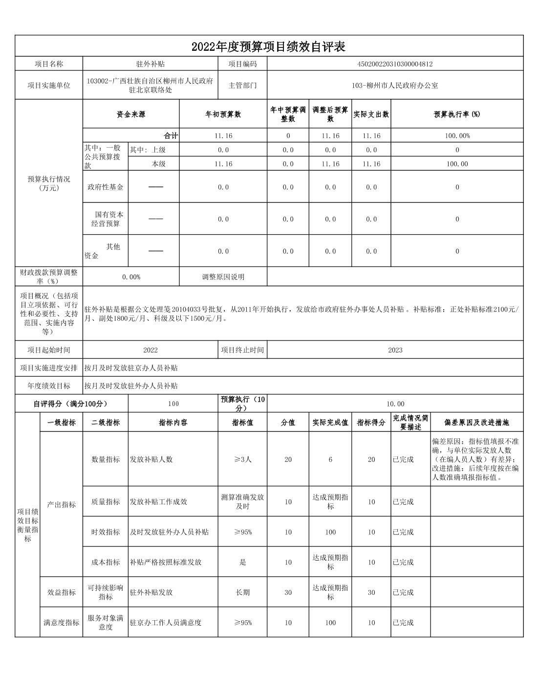 柳州市人民政府驻北京联络处2022年度单位决算 - 2022 - 广西永利博彩网站