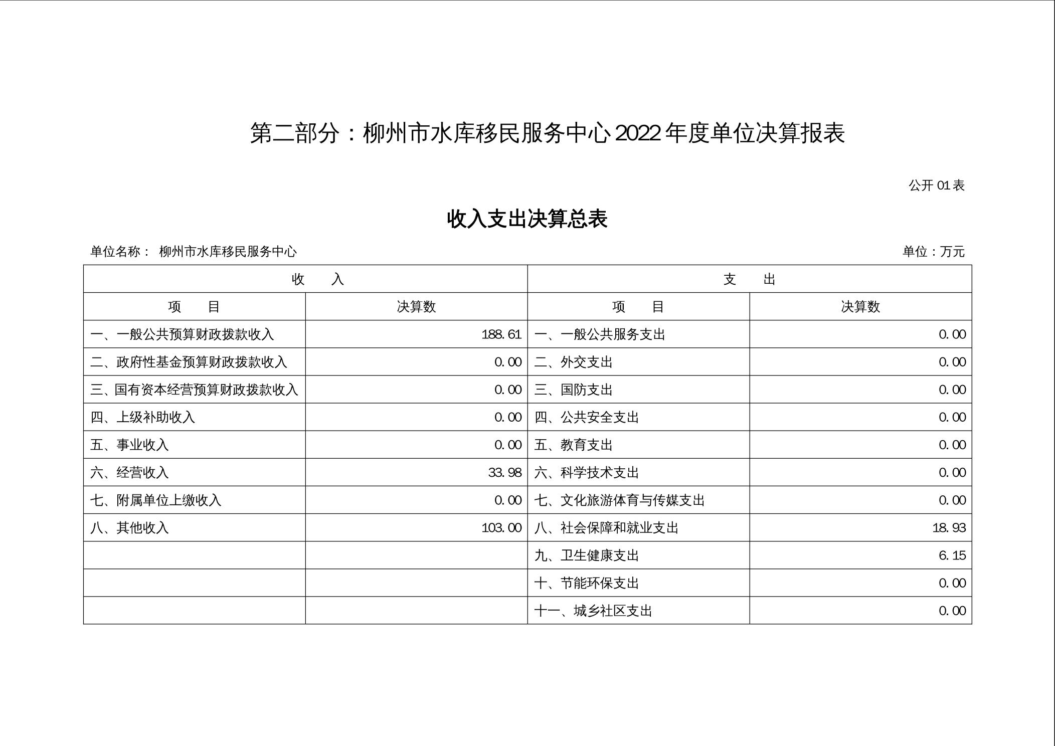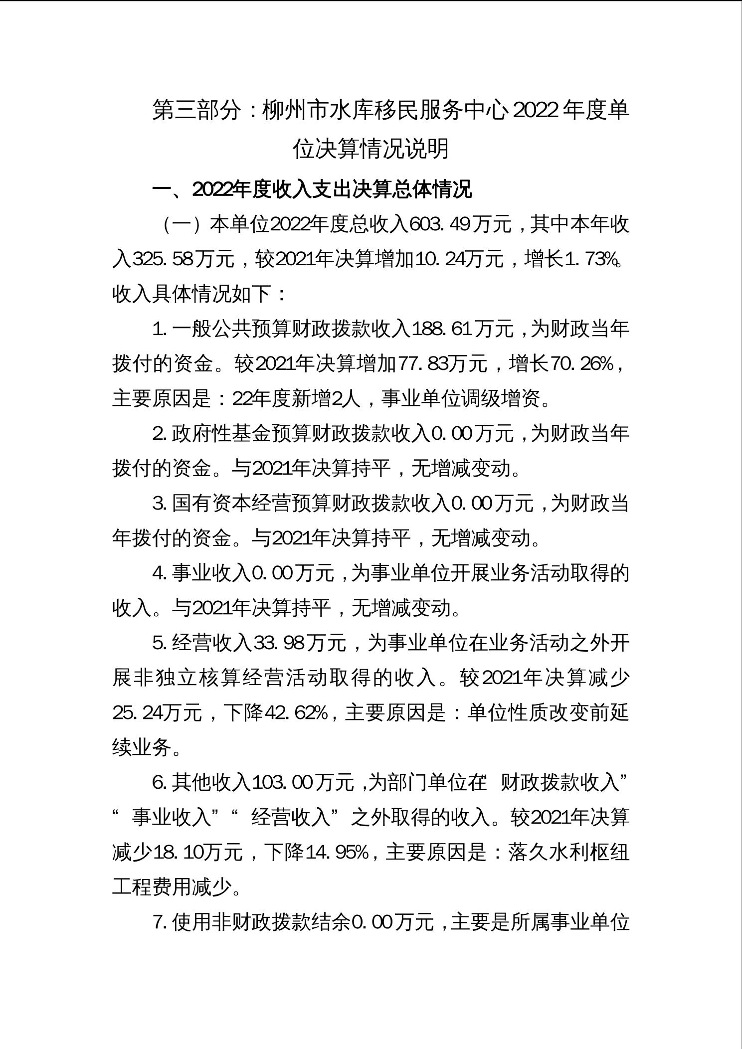 柳州市水库移民服务中心2022年度单位决算 - 2022 - 广西永利博彩网站
