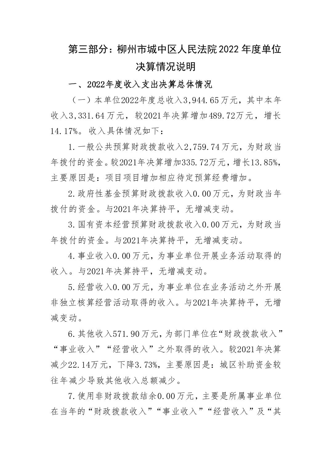 柳州市城中区人民法院2022年度单位决算 - 2022 - 广西永利博彩网站